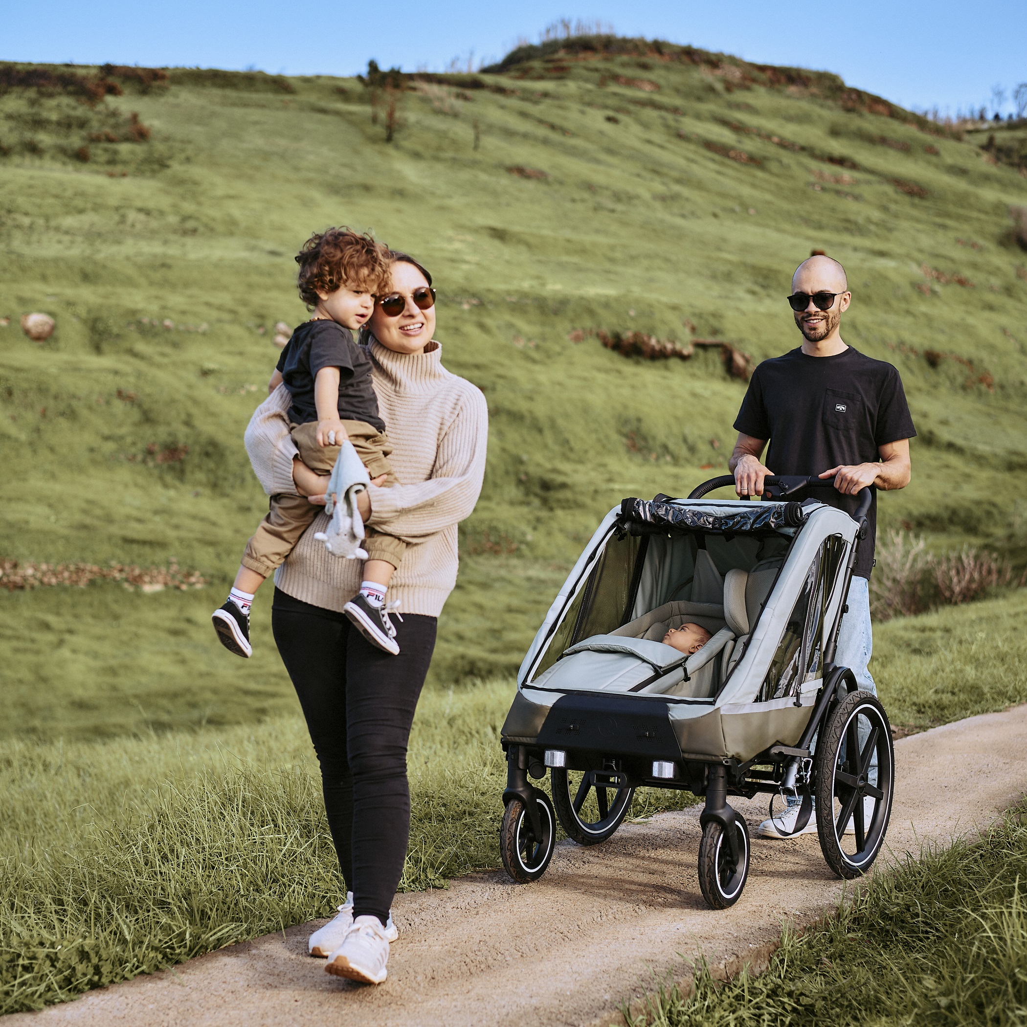 Der ABC Design Neugeboreneneinsatz bietet deinem Baby ab dem ersten Tag maximalen Komfort und Sicherheit. Optimal darin gebettet wie in einem Kokon geschützt begleitet es Dich von Anfang an auf Euren gemeinsamen Abenteuern. Der Babyeinsatz lässt sich unkompliziert anbringen und auch ausbauen. Ein intuitives Befestigungssystem ermöglicht eine einfache und sichere Montage. So verwandelt sich der Fahrradanhänger mit nur wenigen Klicks in einen robusten Kinderwagen, der sich für Spazierfahrten im Wald und in der Stadt eignet. Gegenüber herkömmlichen Hängematteneinhängen profitiert dein Neugeborenes von einer ergonomisch flachen Liegeposition und einer großen Liegefläche mit hohen Seitenschutzwänden und stabilem Boden, deren weiches und atmungsaktives CozyCloud® Material nicht nur rückenschonenden Halt und extra Komfort schenkt, sondern auch ein gesundes Wohlfühlklima. Schutz vor Wind und Wetter bietet die verstellbare Beindecke, die an wärmeren Tagen auch komplett abnehmbar ist. Für Familien mit Zwillingen bietet der Fahrradanhänger Tour auch die Möglichkeit zwei Neugeboreneneinsätze nebeneinander im Anhänger zu verwenden. Erlebe gemeinsame Zeit im Freien und genieße deinen aktiven Alltag mit deinen kleinen Weltentdeckern. Ab Geburt ist der Fahrradanhänger Tour mit dem Neugeboreneneinsatz ausschließlich als robuster Kinderwagen im Buggymodus nutzbar. Auf gemeinsames Fahrrad fahren und joggen solltest Du mit deinem Säugling noch etwas warten.