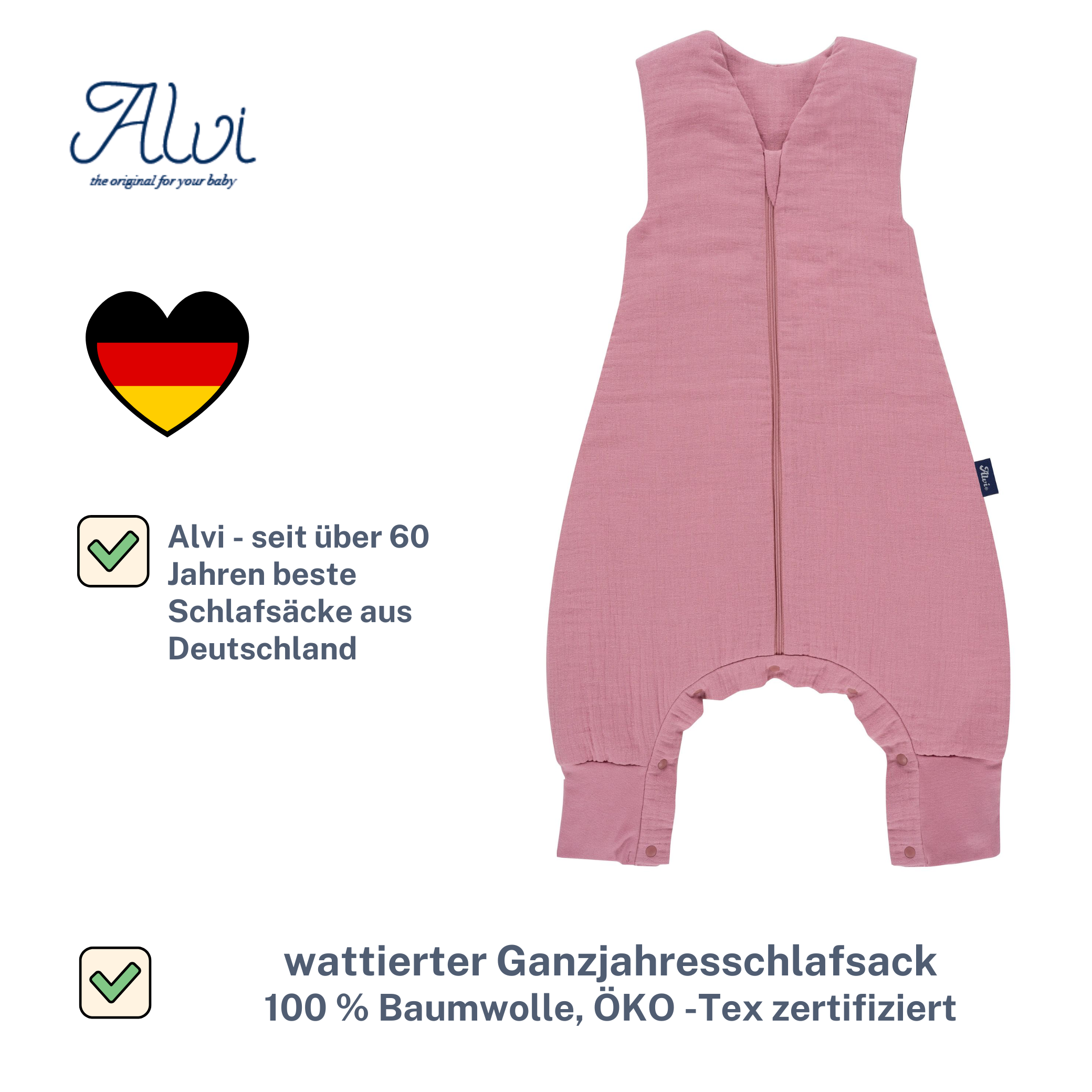 Der tolle Alvi Sleep-Overall mit Füßen ist ein komfortabler Schlafsack mit viel Bewegungsfreiheit. Er ist besonders weich und atmungsaktiv. Mit seinen Füßen ist er besonders für aktivere Kinder bestens geeignet und schenkt ihnen die nötige Bewegungsfreiheit. Mit Hilfe von Druckknöpfen am Schlafsack-Ende lässt er sich unten komplett öffnen. Der Sleep-Overall ist ganzjährig flexibel einsetzbar.