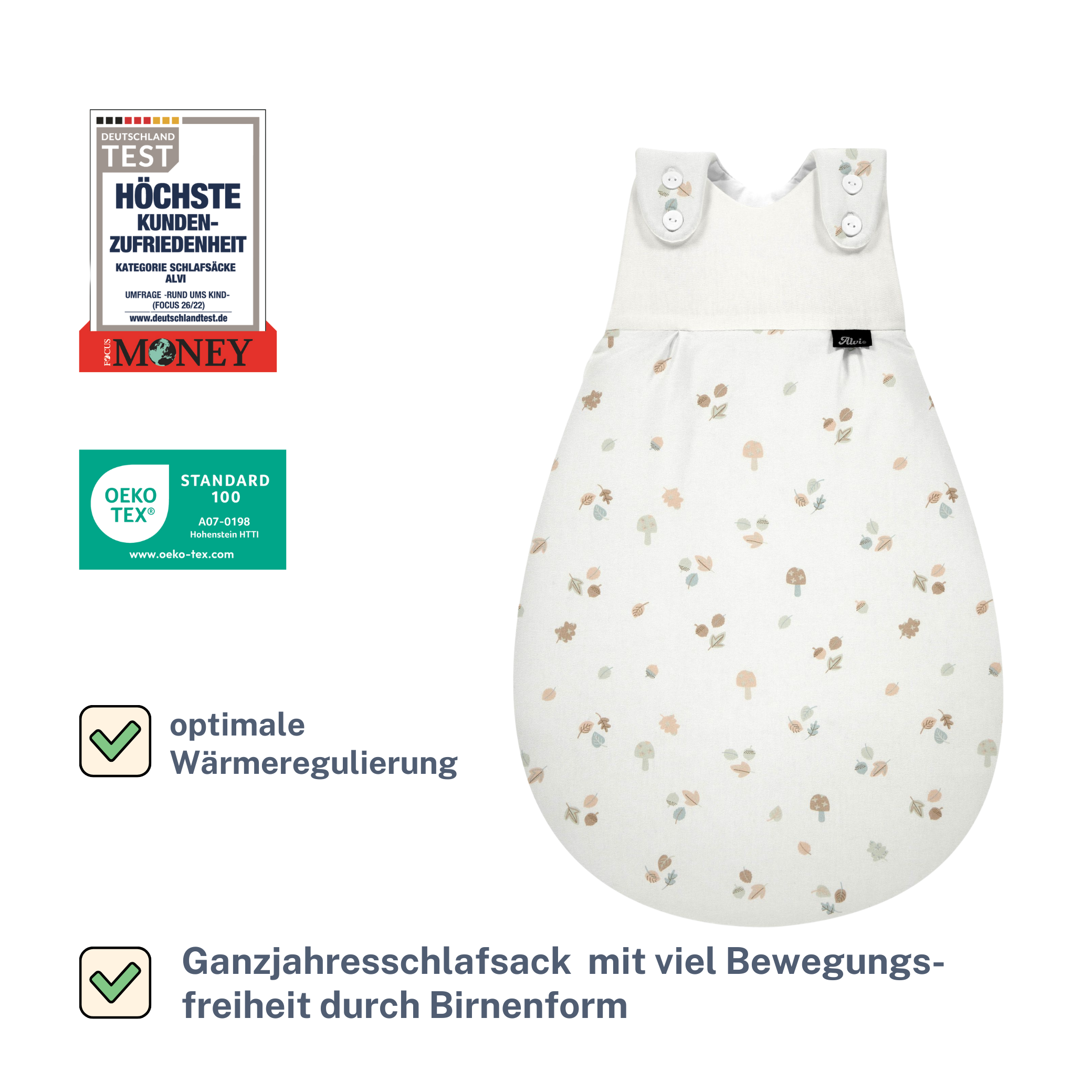 - bietet viel Strampelfreiheit durch Birnenform und garantiert eine sichere Schlaf-und Liegeposition