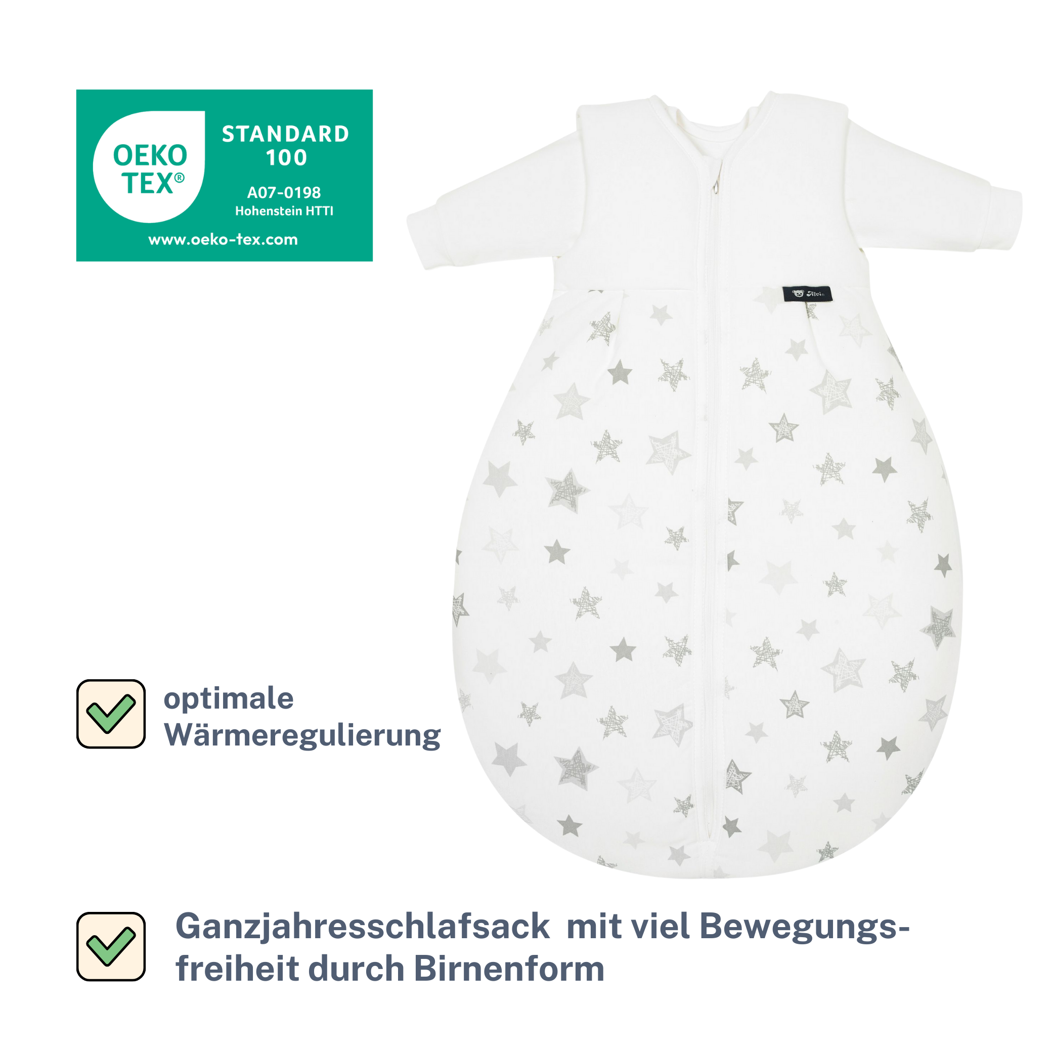 Alvi Kombi-Schlafsack Design Silver Stars Silbergrau, Größe 70 cm
