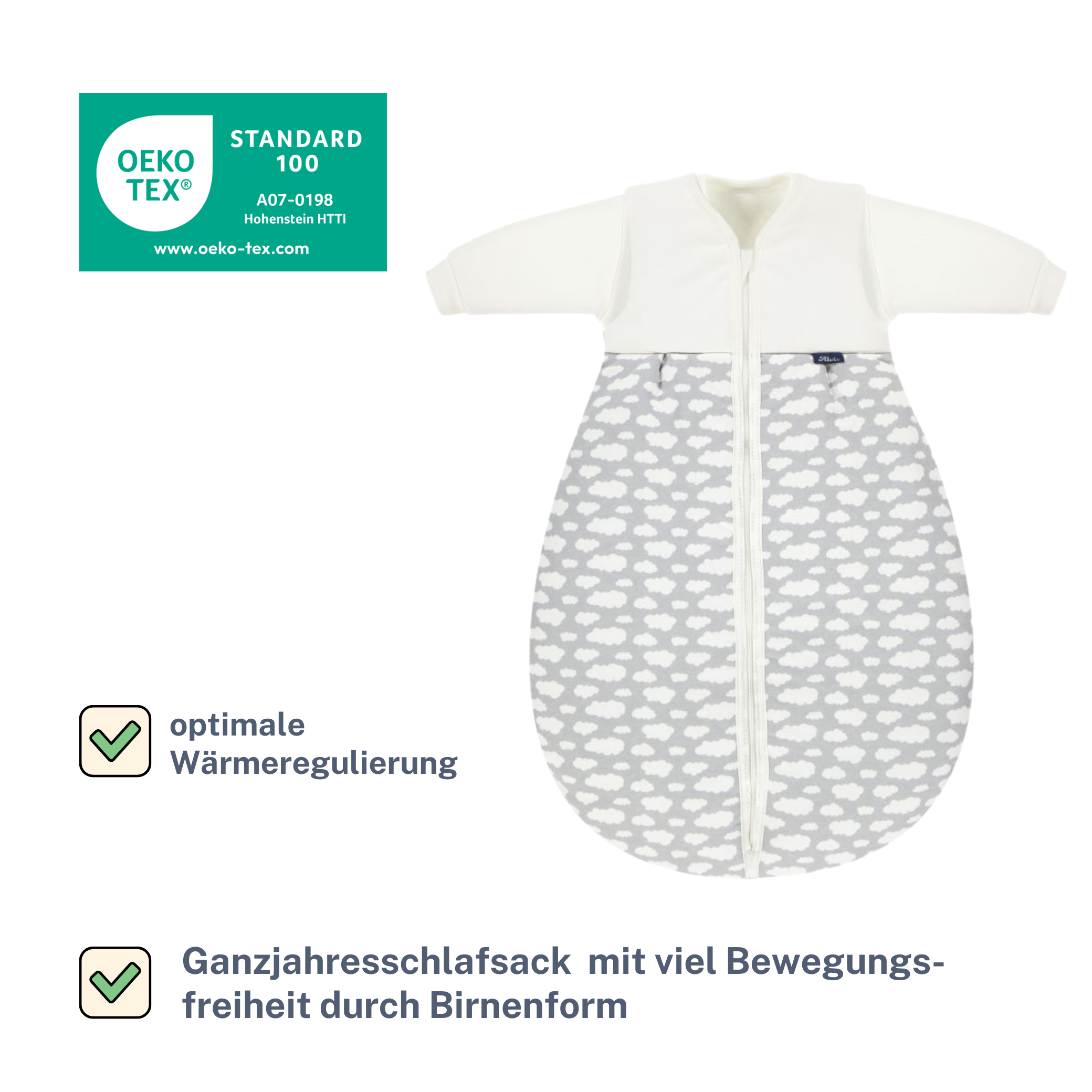 Alvi Kombi-Schlafsack Exklusiv Wolke Silber, Gr. 80 B-Ware