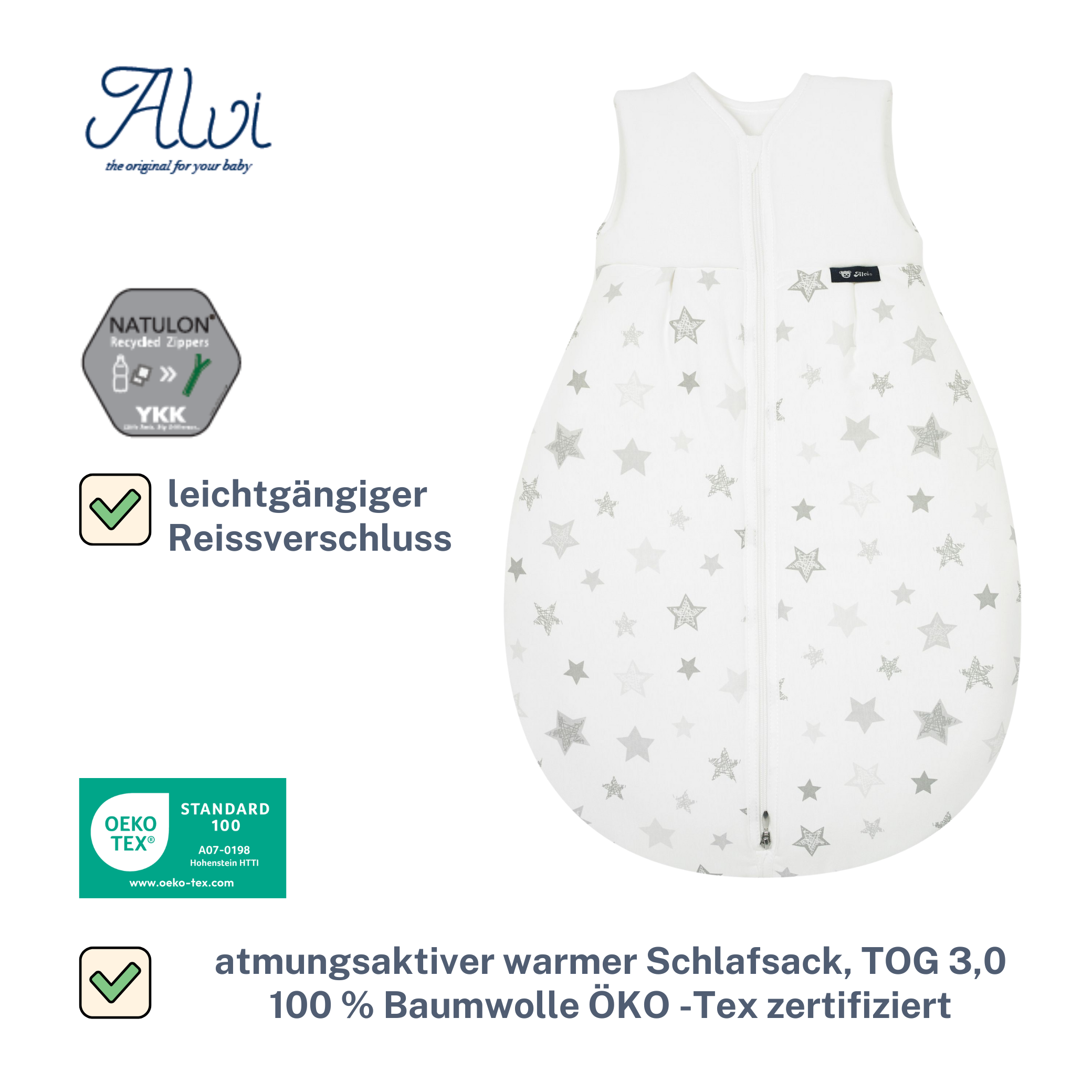 Alvi Schlafsack Mäxchen Thermo Design Silver Stars Silbergrau, Größe 90 B-Ware