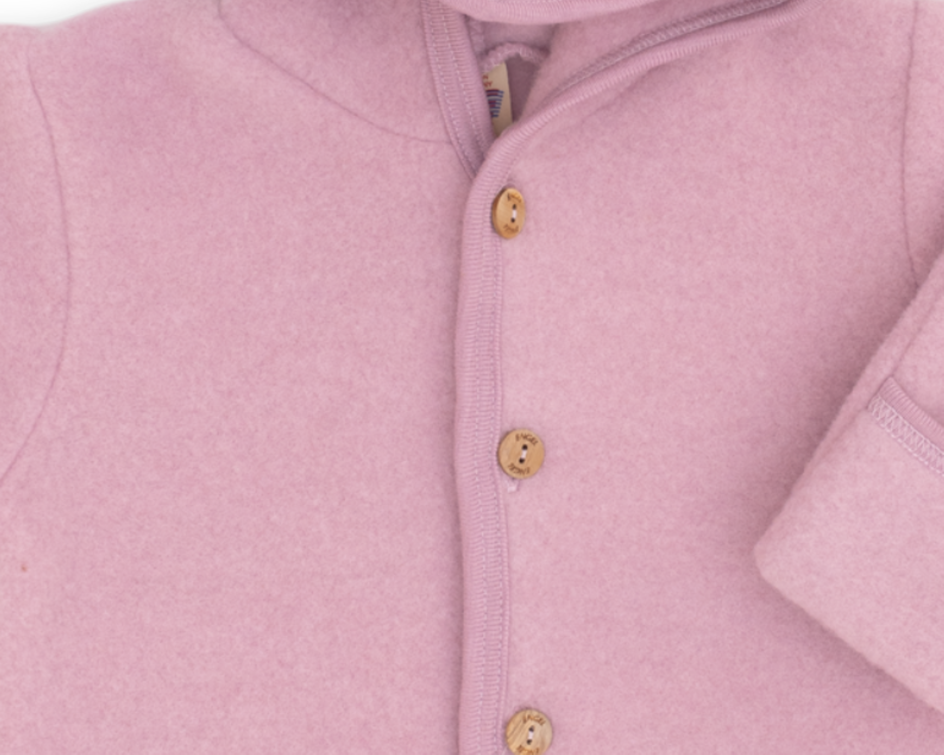 Der Engel Baby-Overall mit Kapuze, Holzknöpfen und Umschlag vereint natürliche Materialien, durchdachtes Design und höchsten Tragekomfort – ideal für Babys in Herbst und Winter. Gefertigt aus 100% Bio-Merinoschurwolle (kbT), wirkt der Overall temperaturregulierend, atmungsaktiv und wärmend – perfekt für empfindliche Babyhaut. Die weiche Kapuze schützt das Köpfchen vor Kälte, während die liebevoll gearbeiteten Holzknöpfe das An- und Ausziehen erleichtern. Dank der umschlagbaren Ärmel und Beinbündchen verwandelt sich der Wollanzug schnell in einen Overall mit integriertem Hand- und Fußschutz – ideal bei Wind und Wetter. Der Overall ist besonders hautfreundlich und allergikergeeignet. Ob als Wollwalkanzug im Kinderwagen, im Tragetuch oder einfach für unterwegs: Dieser Baby Wolloverall steht für nachhaltige Qualität, ökologische Herstellung in Deutschland und geborgenen Komfort von Anfang an.