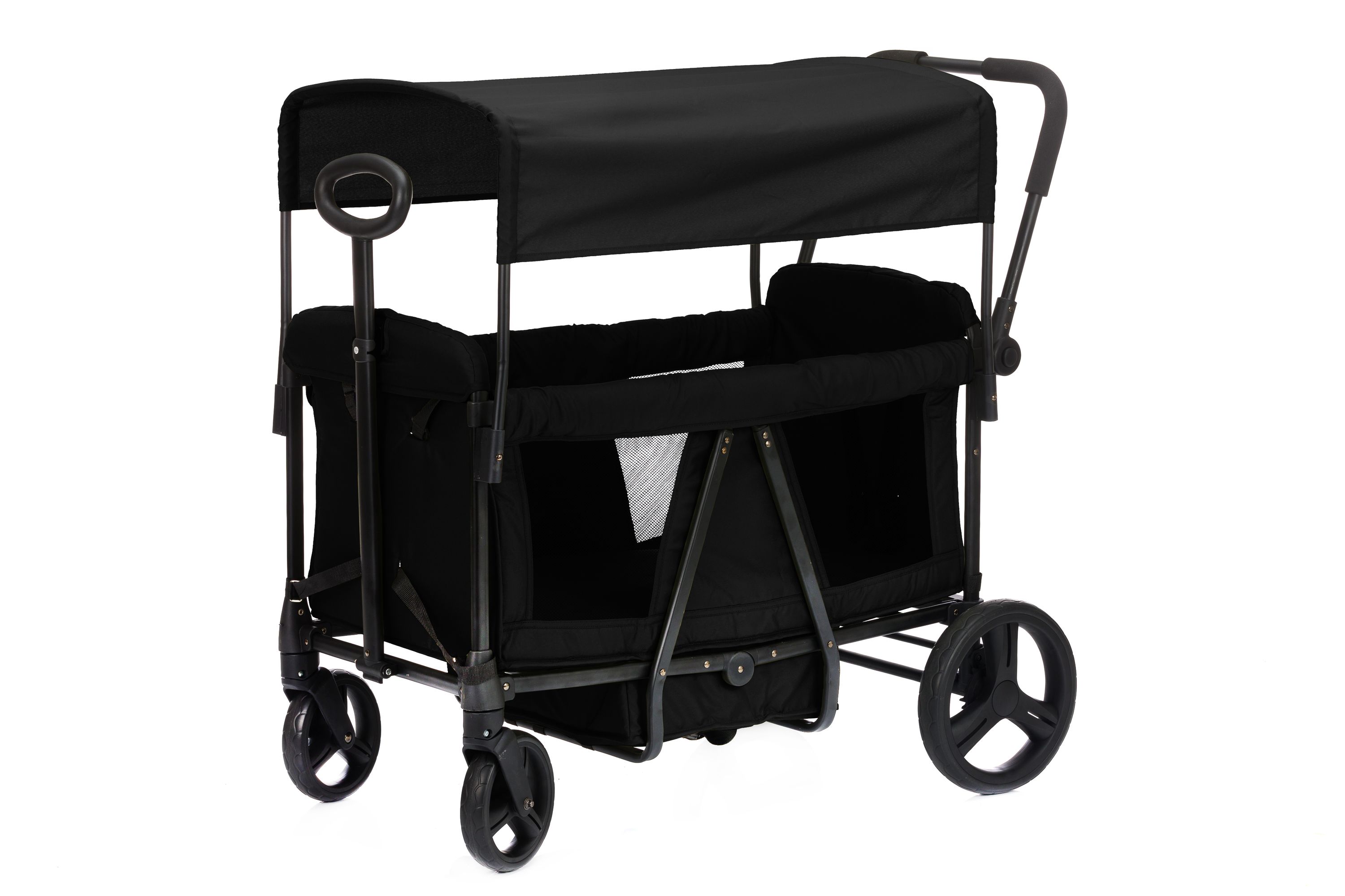 Mit dem praktischen Bollerwagen bist du bestens ausgestattet – egal ob beim Familienausflug, Spaziergang im Park, im Urlaub oder für den täglichen Einsatz im Alltag. Der Wagen bietet dir zwei bequeme Sitze für deine Kinder, ein schützendes Dach gegen Sonne und leichten Regen sowie zahlreiche durchdachte Funktionen, die dir den Alltag erleichtern. Die verstellbare Schiebestange und die zusätzliche Zugstange bieten maximale Flexibilität für Eltern – egal ob schieben oder ziehen. Das integrierte 3-Punkt-Gurtsystem sorgt dabei für die nötige Sicherheit deiner kleinen Mitfahrer. Für noch mehr Flexibilität lässt sich der stabile Wagen auch ohne Sitz als Transportwagen nutzen – ideal für Einkäufe, Picknicks oder Gepäck. Das durchdachte Design punktet mit einer stabilen Einlage und hochwertigen Materialien. Der Wagen lässt sich leicht zusammenklappen und kompakt verstauen. Die großen Räder (Vorderrad: 20 cm, Hinterrad: 30 cm) sorgen für eine ruhige Fahrt, selbst auf unebenem Terrain. Mit einer Tragkraft von bis zu 88 kg und einem Eigengewicht von nur 9 kg ist dieser Bollerwagen nicht nur robust, sondern auch angenehm leicht zu handeln.