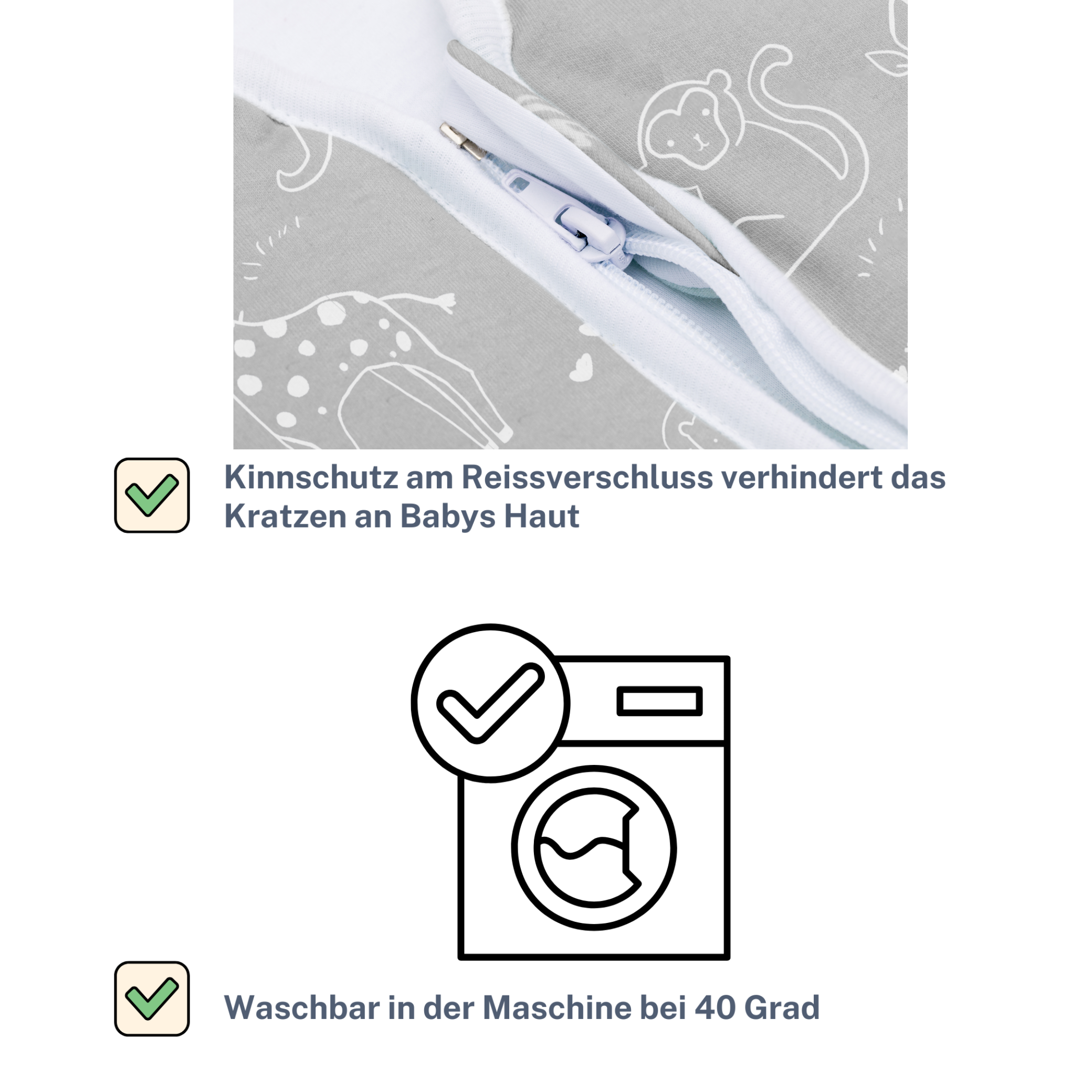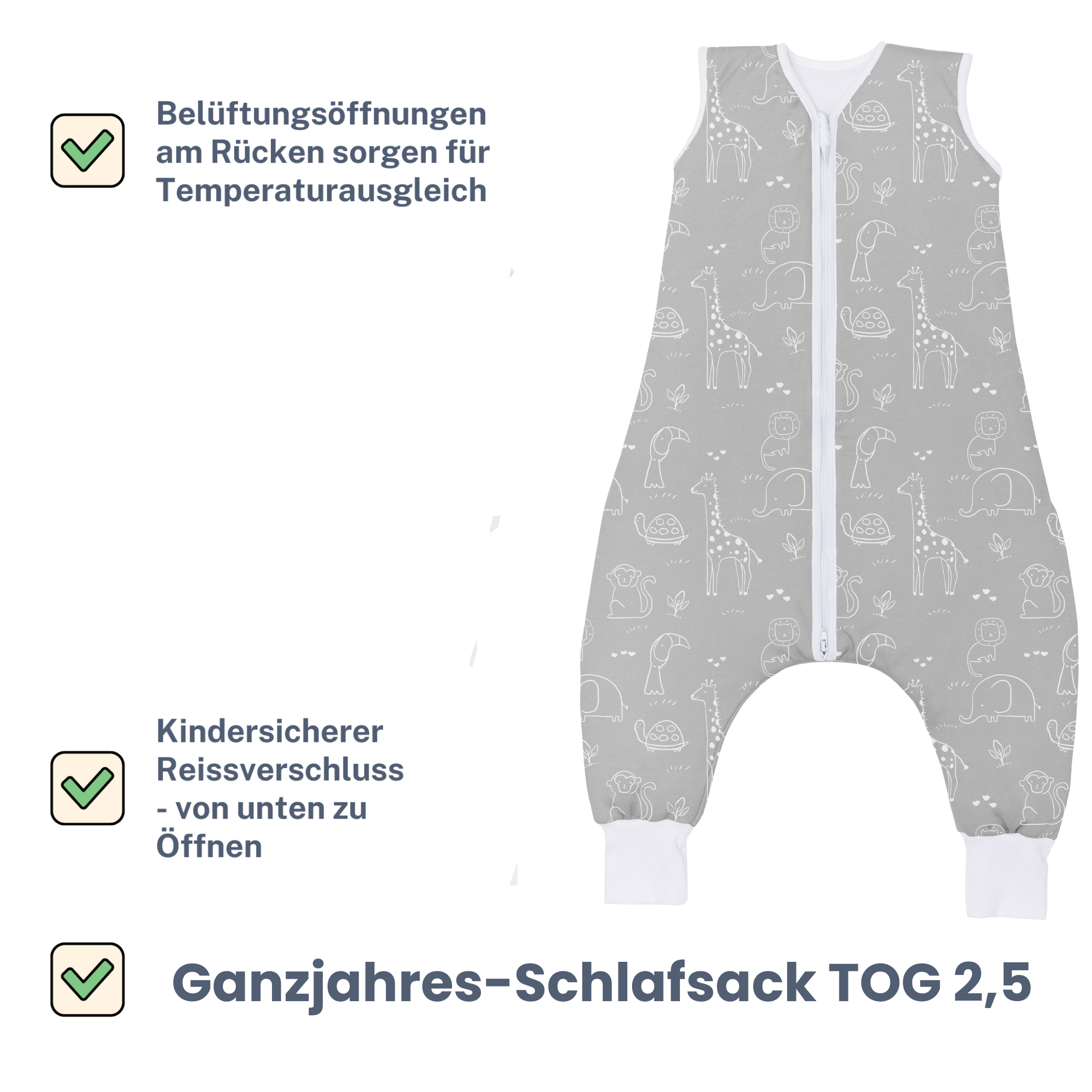 - Babyschlafsack mit Beinen für das ganze Jahr und Raumtemperaturen von 15-21°C
