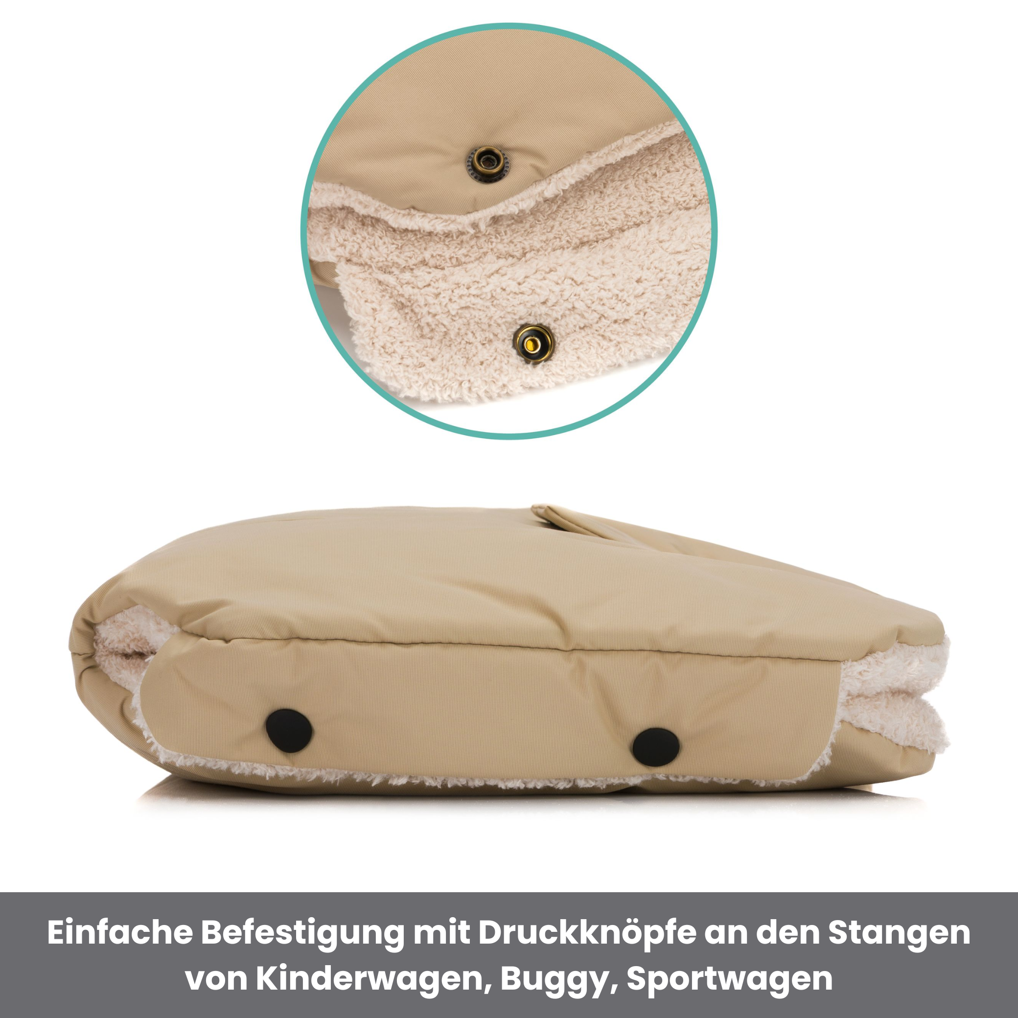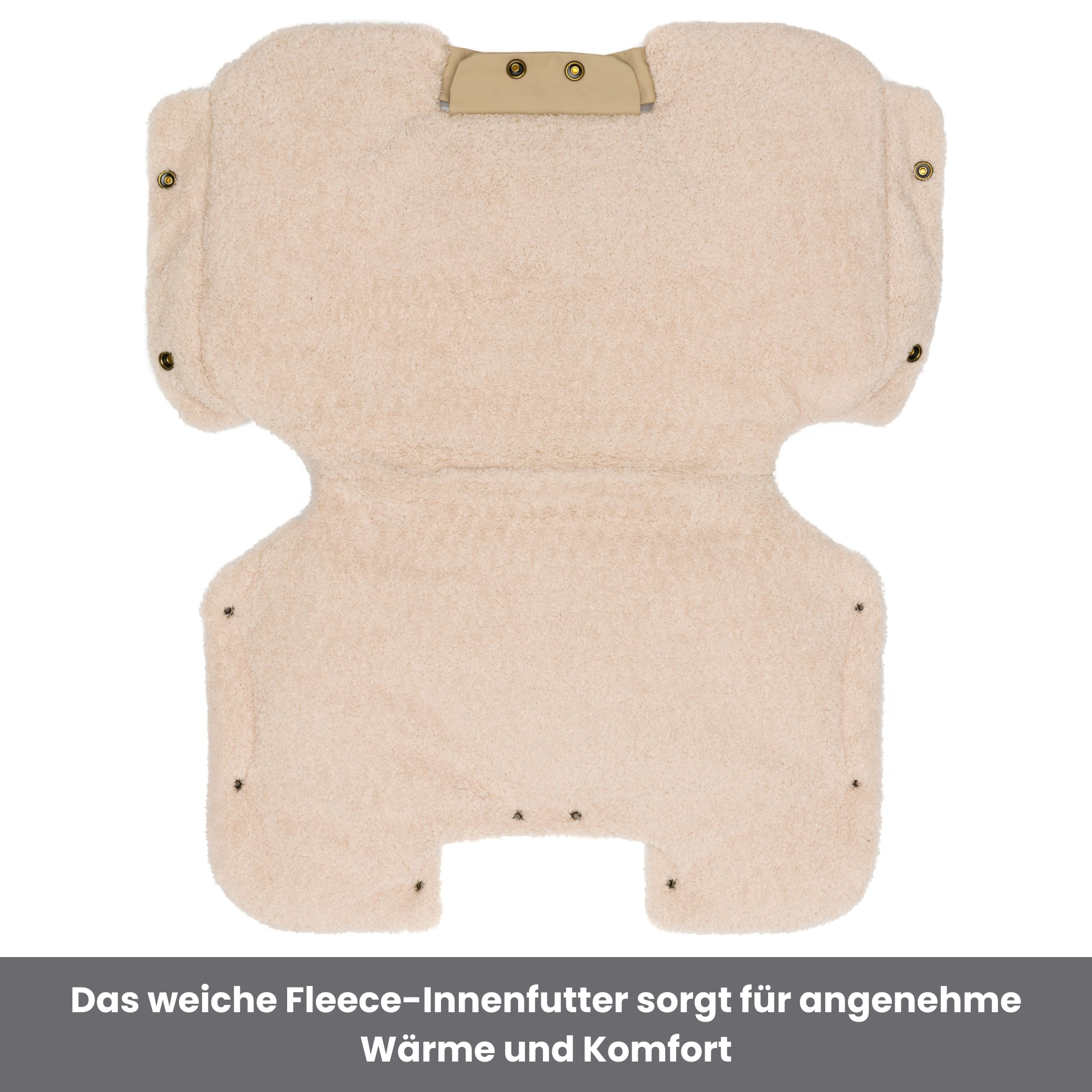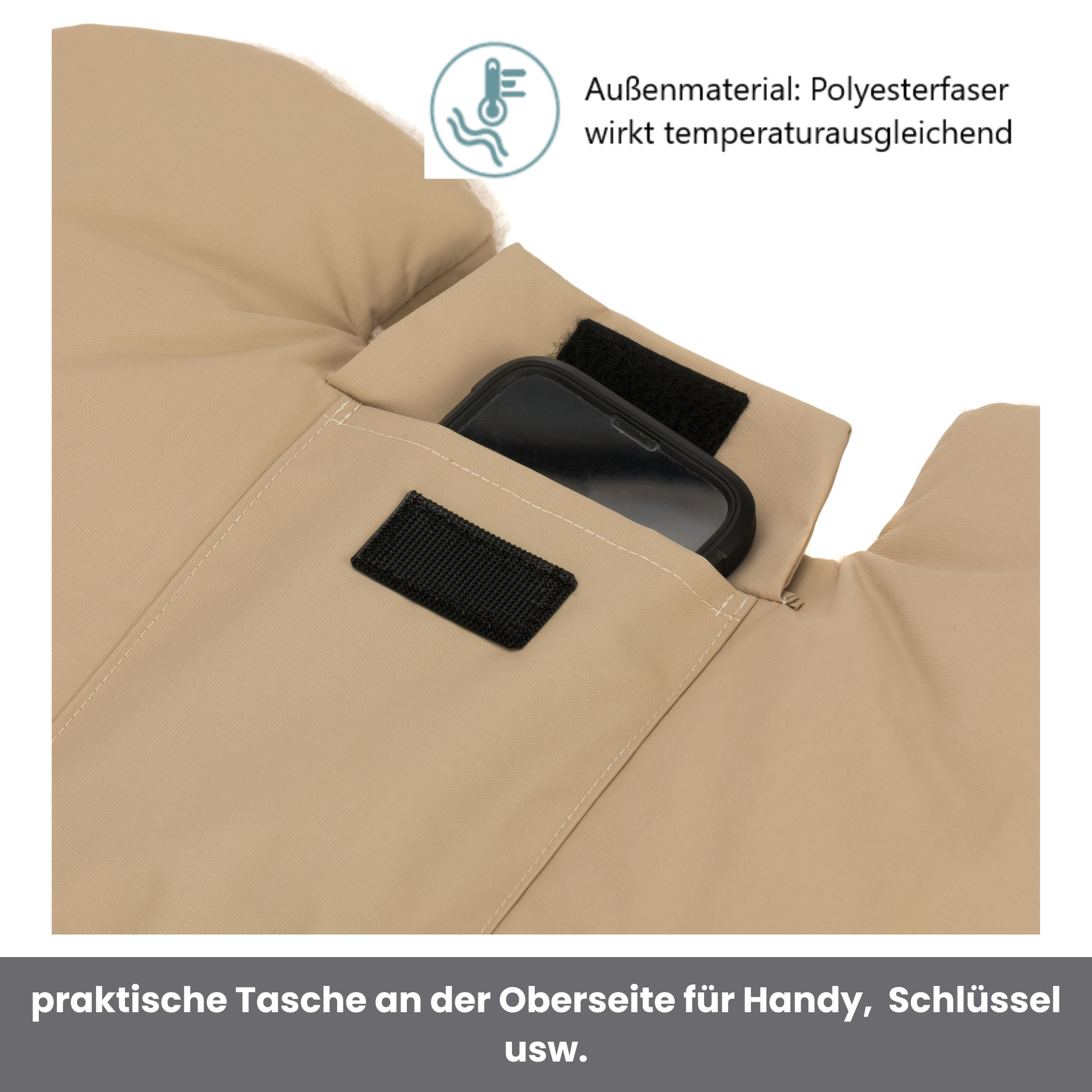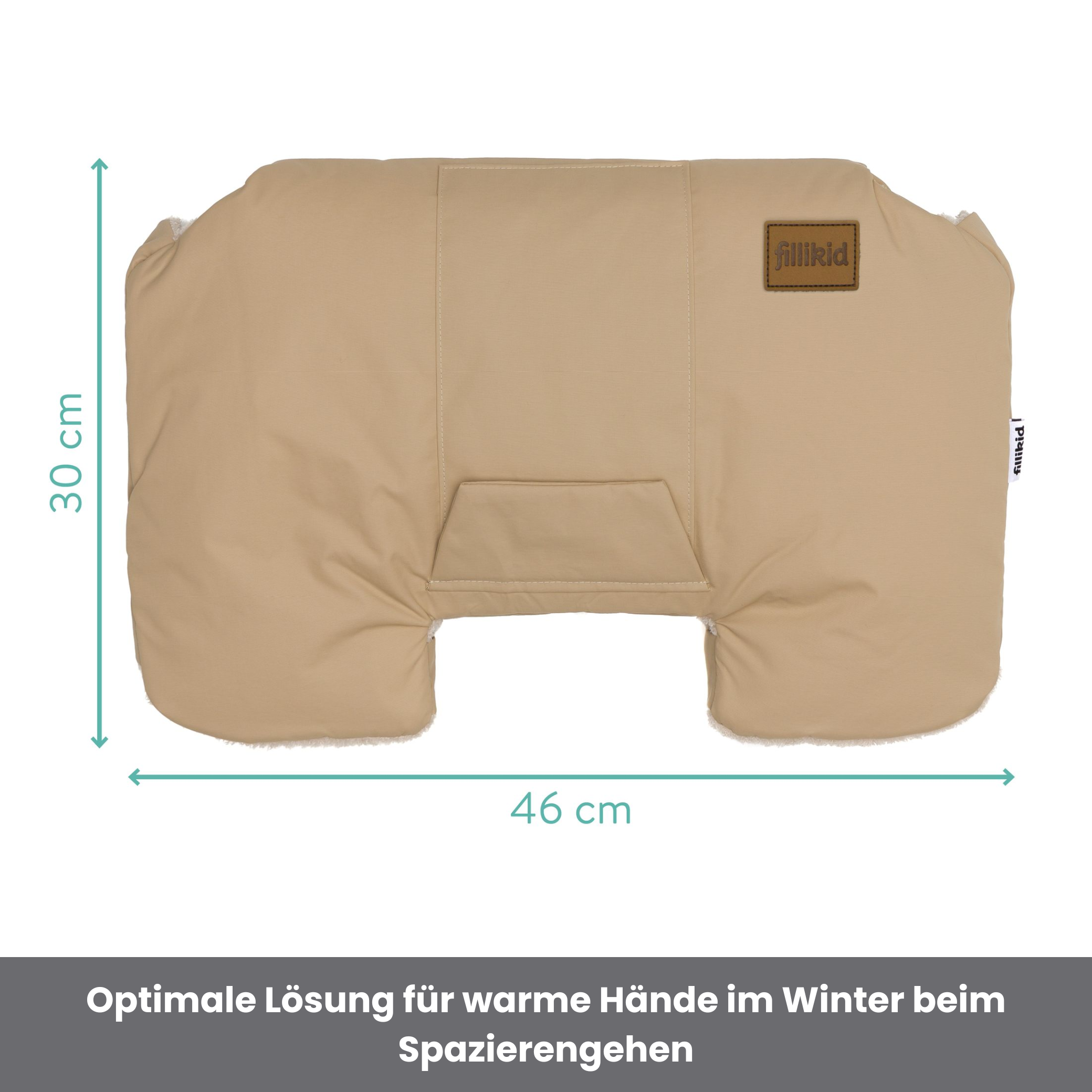 Der Fillikid Handwärmer Kalix Teddy Exklusiv ist die perfekte Lösung für warme Hände an kalten Tagen und vereint stilvolles Design mit durchdachter Funktionalität. Mit seinem modernen Stepp-Look und dem kuscheligen Teddy-Kunstfellrand verleiht er jedem Kinderwagen oder Buggy eine elegante und gemütliche Optik. Das weiche Fleece-Innenfutter sorgt für angenehme Wärme und Komfort, während das hochwertige Außenmaterial zuverlässig vor Wind und Nässe schützt. Dank praktischer Klettverschlüsse lässt sich der Handwärmer im Handumdrehen an fast allen gängigen Kinderwagen befestigen und bietet Eltern die Möglichkeit, Spaziergänge auch bei frostigen Temperaturen entspannt zu genießen – ohne lästige Handschuhe. Der Kalix Teddy Exklusiv überzeugt zudem durch seine pflegeleichten Eigenschaften: einfach bei 30 °C in der Maschine waschbar und sofort wieder einsatzbereit. Ein stilvolles, funktionales und langlebiges Accessoire, das Wärme, Schutz und Komfort optimal miteinander verbindet – ideal für Eltern, die Qualität und Design gleichermaßen schätzen.