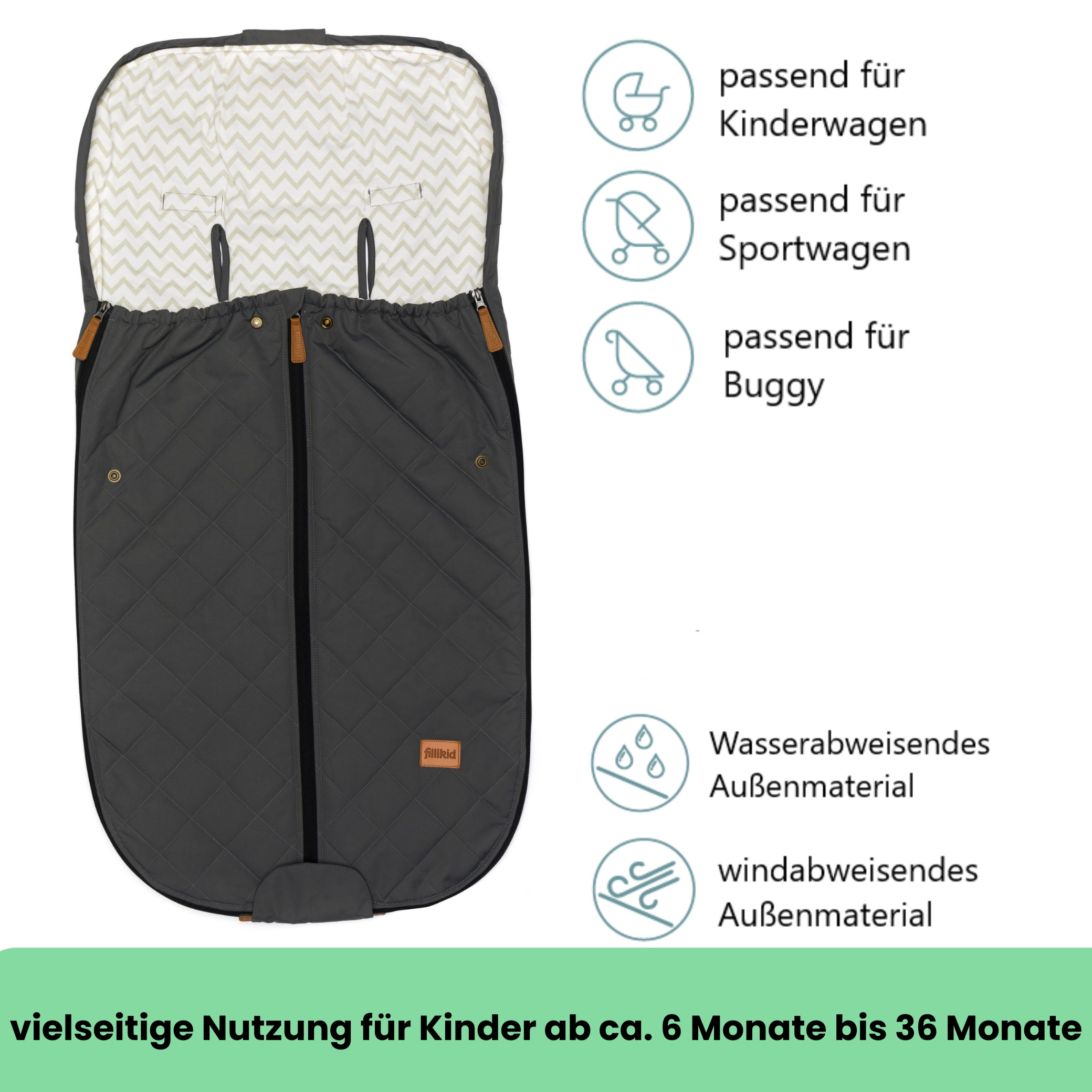 Der Fillikid Sommerfußsack Light Big ist ideal für warme Frühjahrs- und Sommertage und bietet deinem Kind optimalen Komfort im Buggy, Sportwagen oder Kinderwagen. Das leichte, atmungsaktive Material sorgt für eine angenehme Temperaturregulierung, verhindert Überhitzung und schafft ein gemütliches Klima für dein Baby. Durch die universelle Passform und praktische Gurtschlitze sitzt dein Kind jederzeit sicher und bequem.