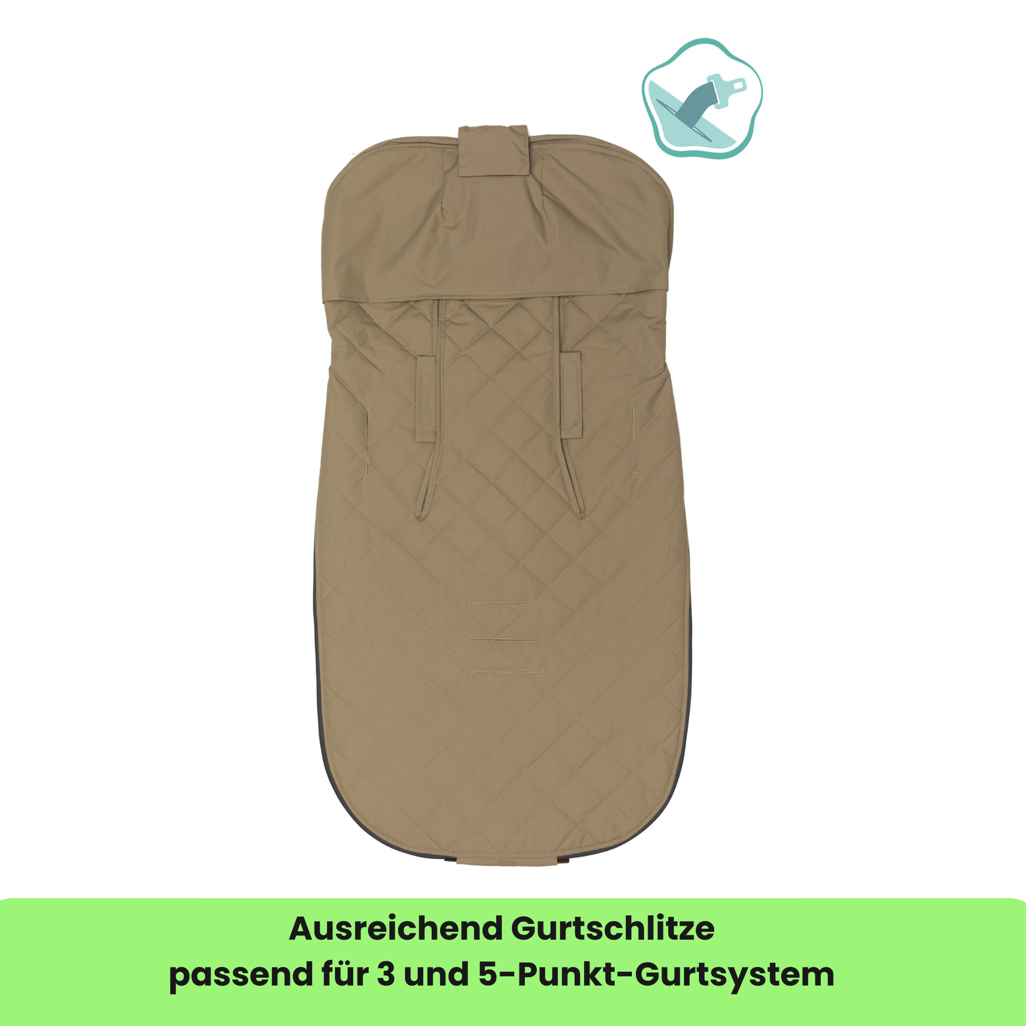 • Gurtschlitze für sichere Befestigung