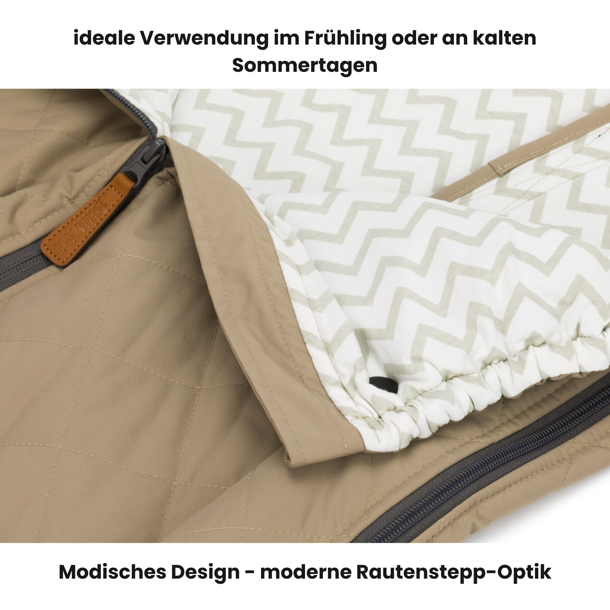 Das weiche Innenmaterial bietet hohen Liegekomfort, während das pflegeleichte Außenmaterial die Reinigung erleichtert. So ist der Fußsack nicht nur funktional, sondern auch ein stilvolles Baby-Zubehör für unterwegs.