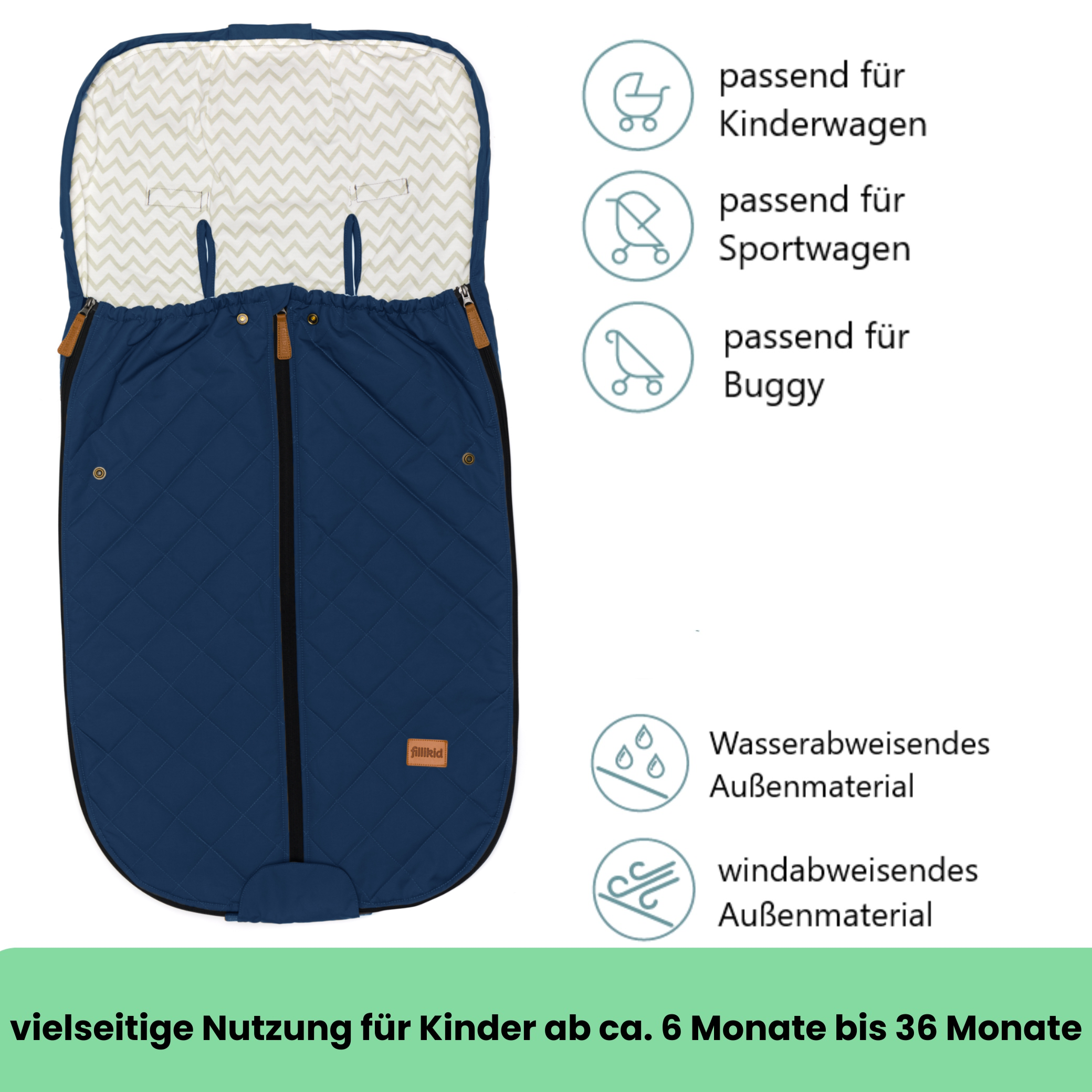 Der Sommer Fußsack von Fillikid überzeugt durch seine universelle Passform und ist kompatibel mit den meisten gängigen Kinderwagen, Buggys und Sportwagen. Durch die praktischen Gurtschlitze lässt sich der Fußsack sicher befestigen, sodass dein Baby jederzeit geschützt und bequem sitzt.