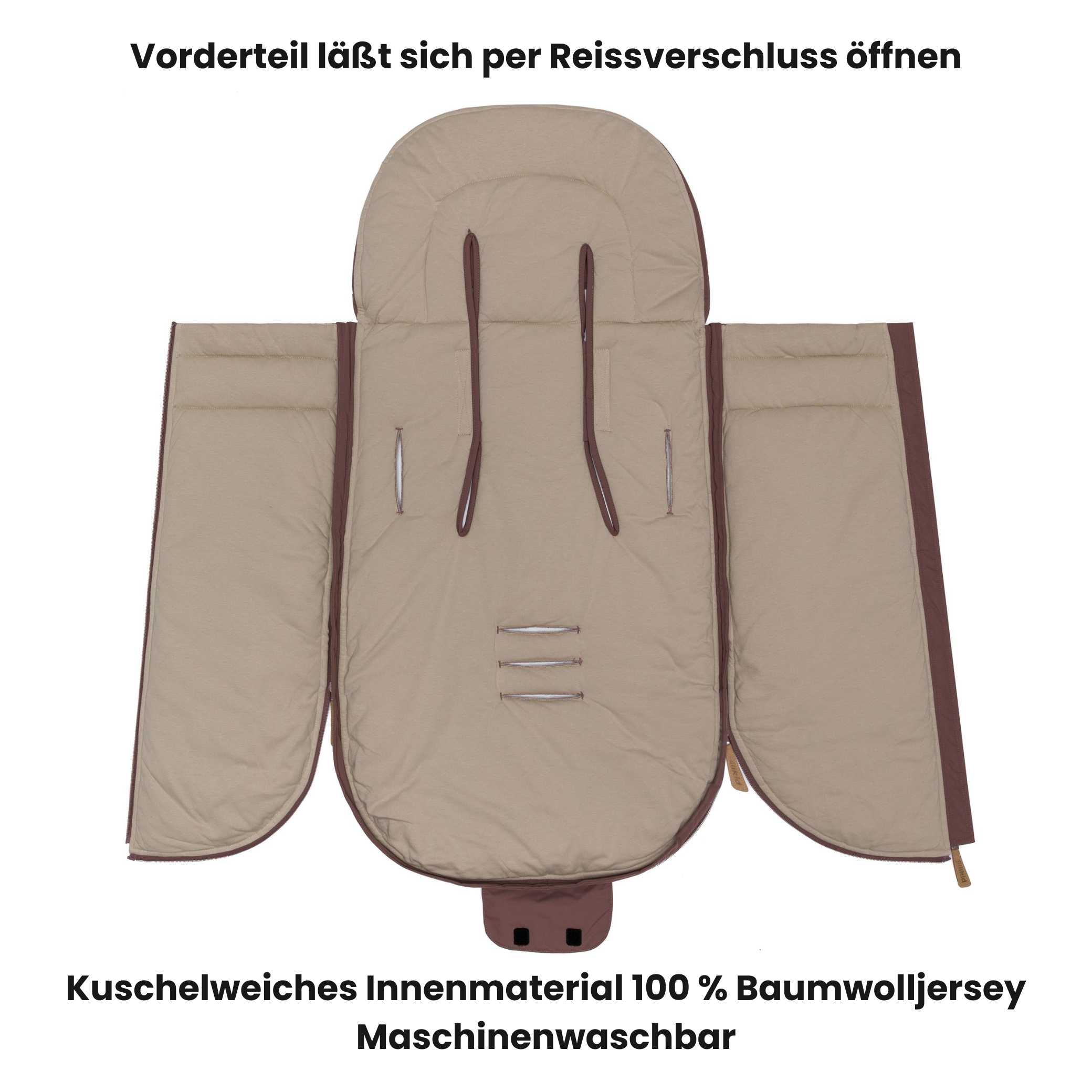 Wenn es draußen frischer wird, ist eine zusätzliche Schicht für dein Baby genau das Richtige – besonders in den Übergangszeiten. Der Fußsack Light Trend begleitet euch durch Frühling und Sommer und sorgt dafür, dass dein kleiner Schatz jederzeit angenehm eingepackt ist. Außen schützt robustes Polyester vor Wind und Wetter, innen sorgt weicher Baumwoll-Jersey für ein sanftes Gefühl auf Babys Haut. Dank des durchgehenden Reißverschlusses kannst du den Fußsack ganz unkompliziert öffnen. Das Vorderteil lässt sich komplett abnehmen – so wird der Fußsack im Handumdrehen zur praktischen Sitzauflage. Die Gurtöffnungen passen zu allen gängigen 5-Punkt-Gurtsystemen und halten alles sicher an Ort und Stelle – ganz ohne Verrutschen.