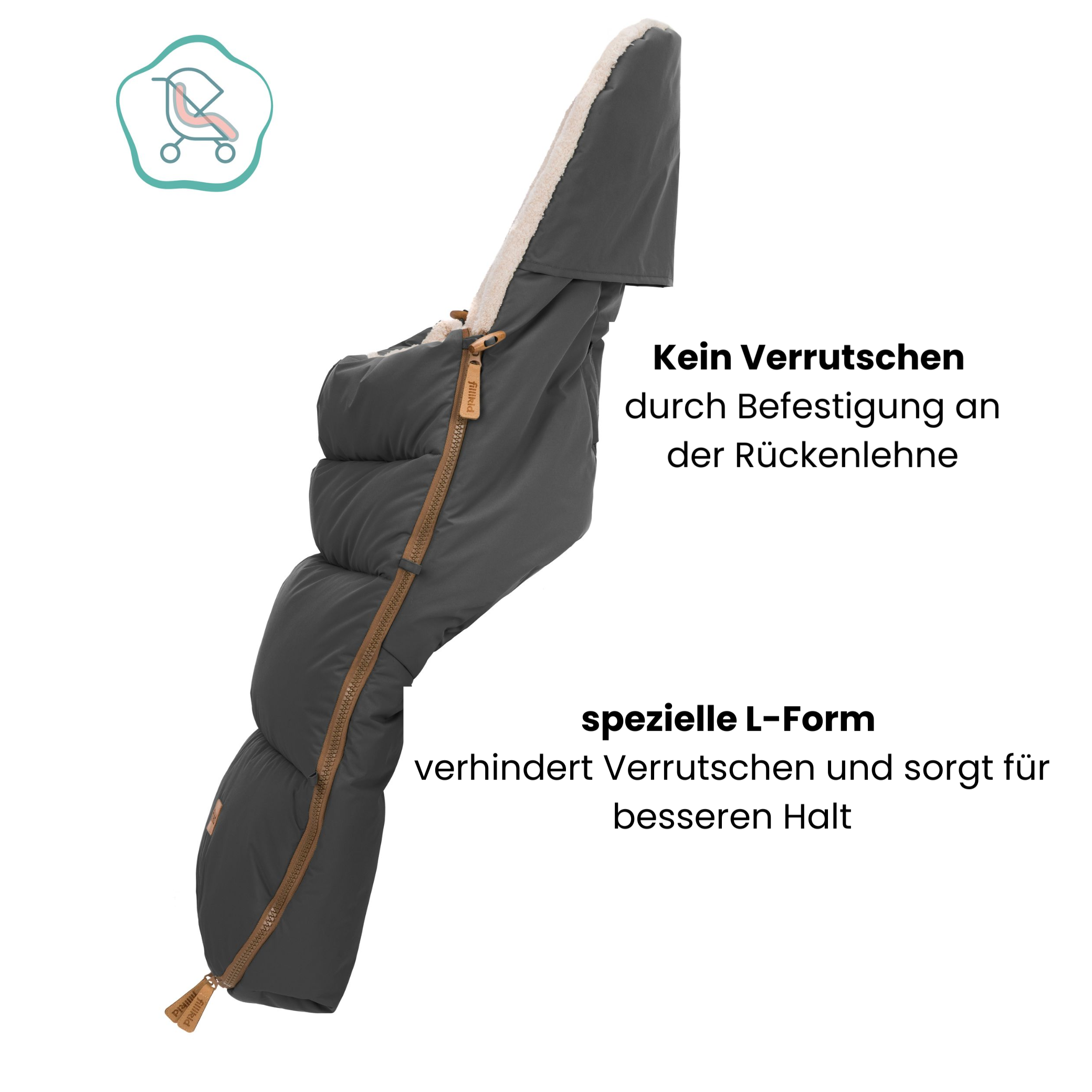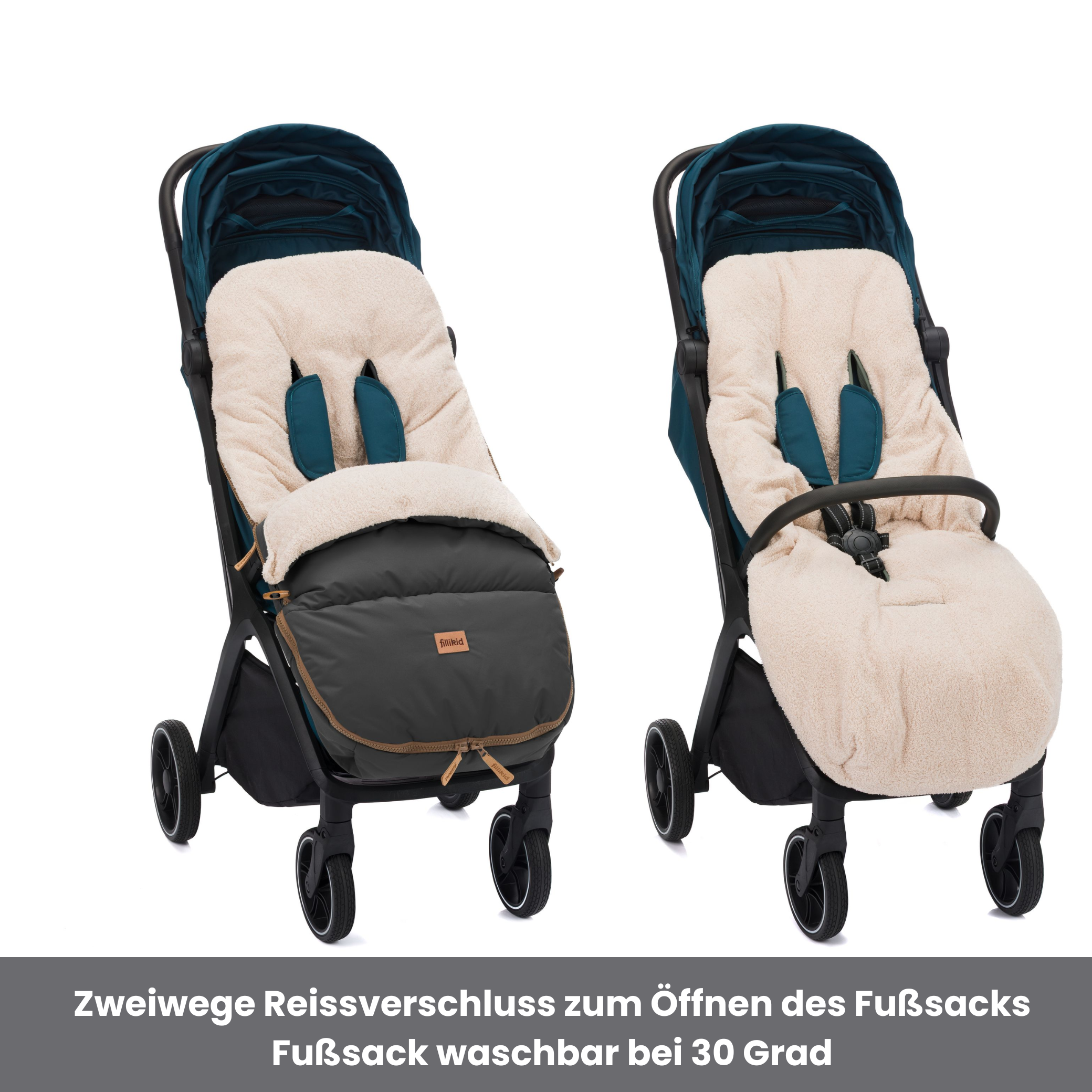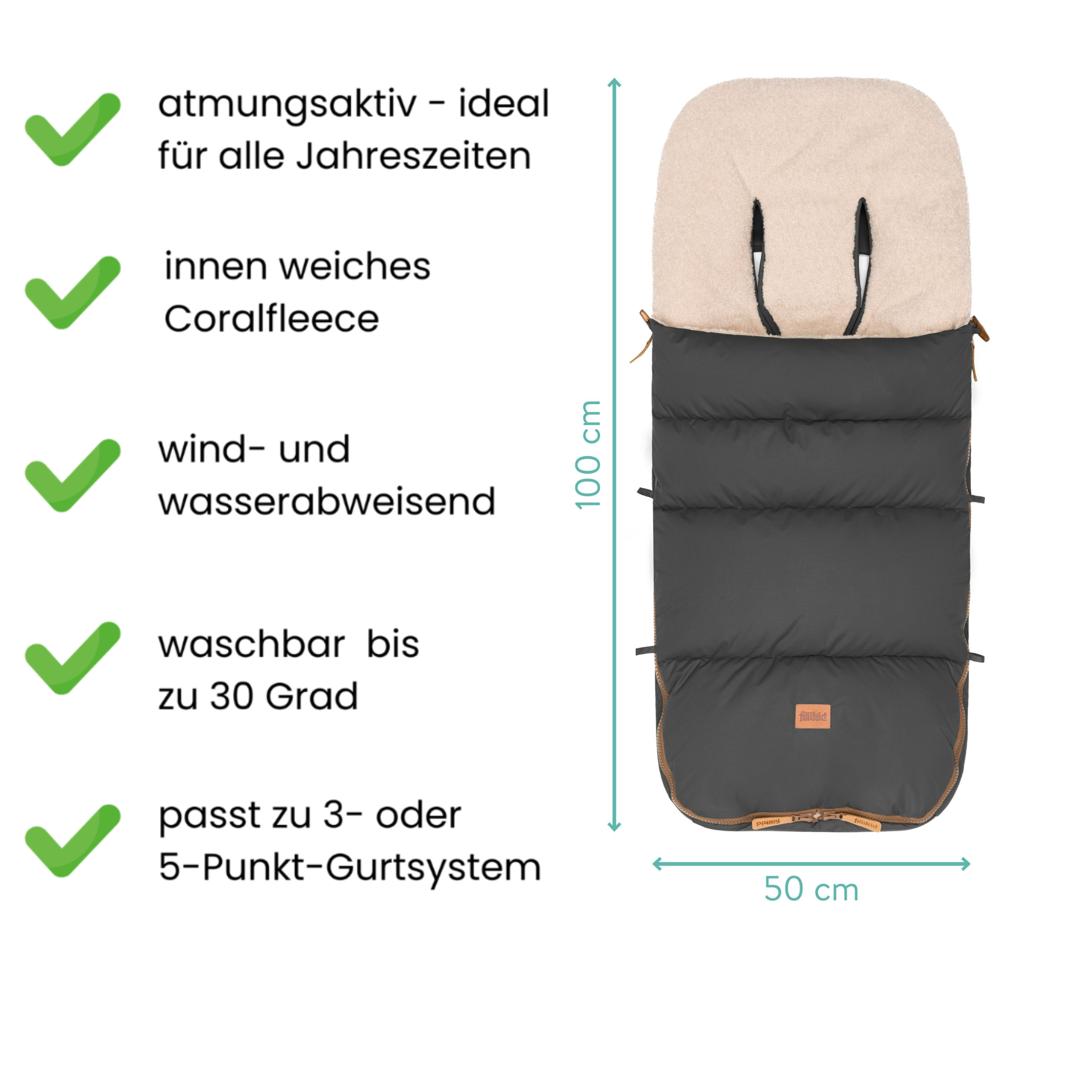 Der Universal Fußsack bietet Ihrem Kind Schutz und Wärme. Das strapazierfähige Außenmaterial ist wasser- und windabweisend. Für Herbst und Winter sind Sie so bestens gerüstet. Die Abdeckung über dem Reißverschluss schützt zusätzlich vor kaltem Wind. Dieser schicke Winterfußsack von Fillikid besticht durch sein schlichtes Design und durchdachte Funktionalität. Geeignet für Kinderwagen & Buggys lassen sich mit diesem Fußsack Spaziergänge zu kälteren Jahreszeiten unternehmen, zu welcher es Ihr Baby schön warm und kuschelig darin hat. Integrierte Gurtschlitze zur Durchführung von Sicherheitsgurten, zusammen mit einer optimalen Passform verhindern so effektiv ein ungewolltes Herausrutschen. Mittels Rundum-Reißverschluss lässt sich zudem der Innenbereich des Fußsacks abtrennen und so separat als Sitzauflage nutzen.