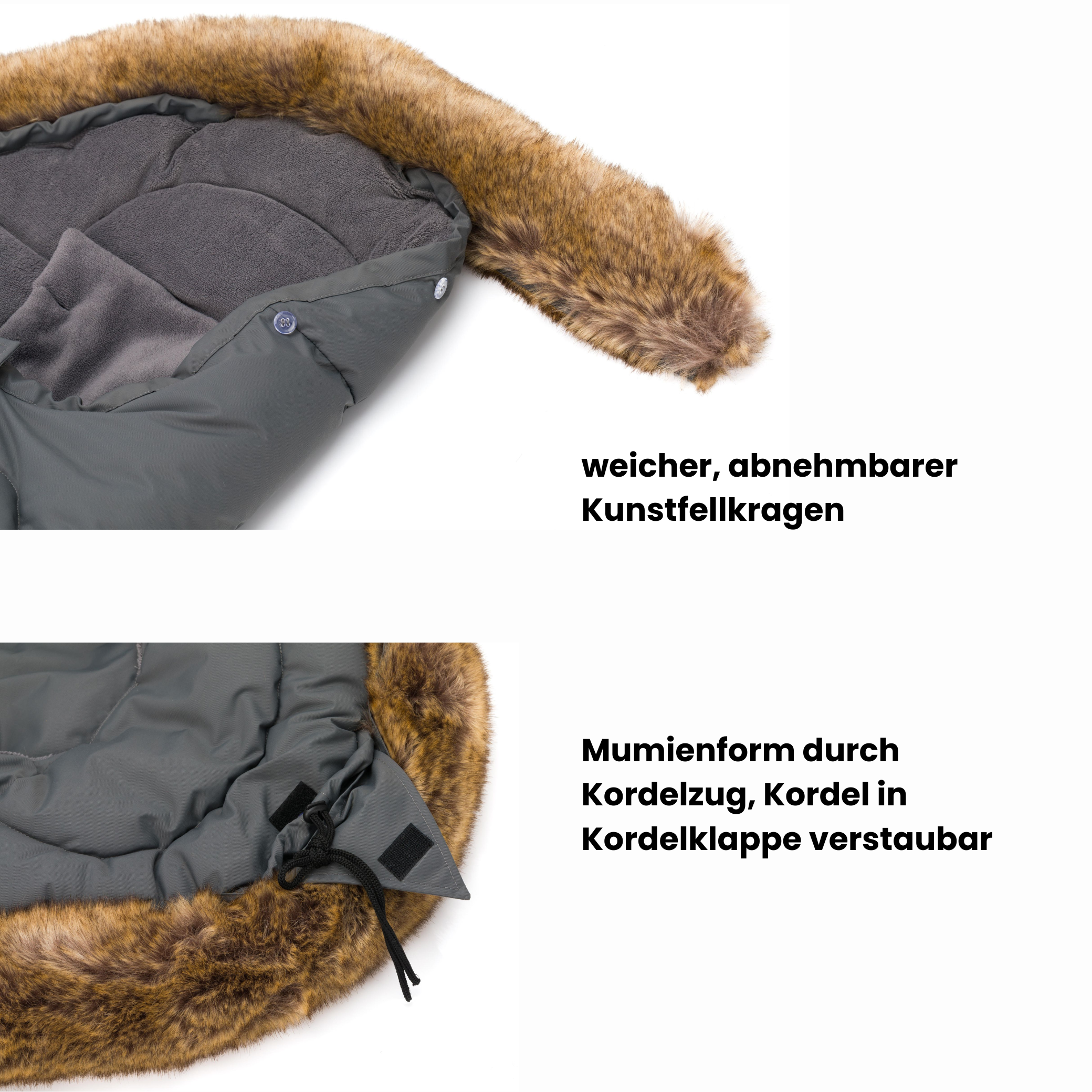 - Stylischer und abnehmbarer Kunstfellkragen