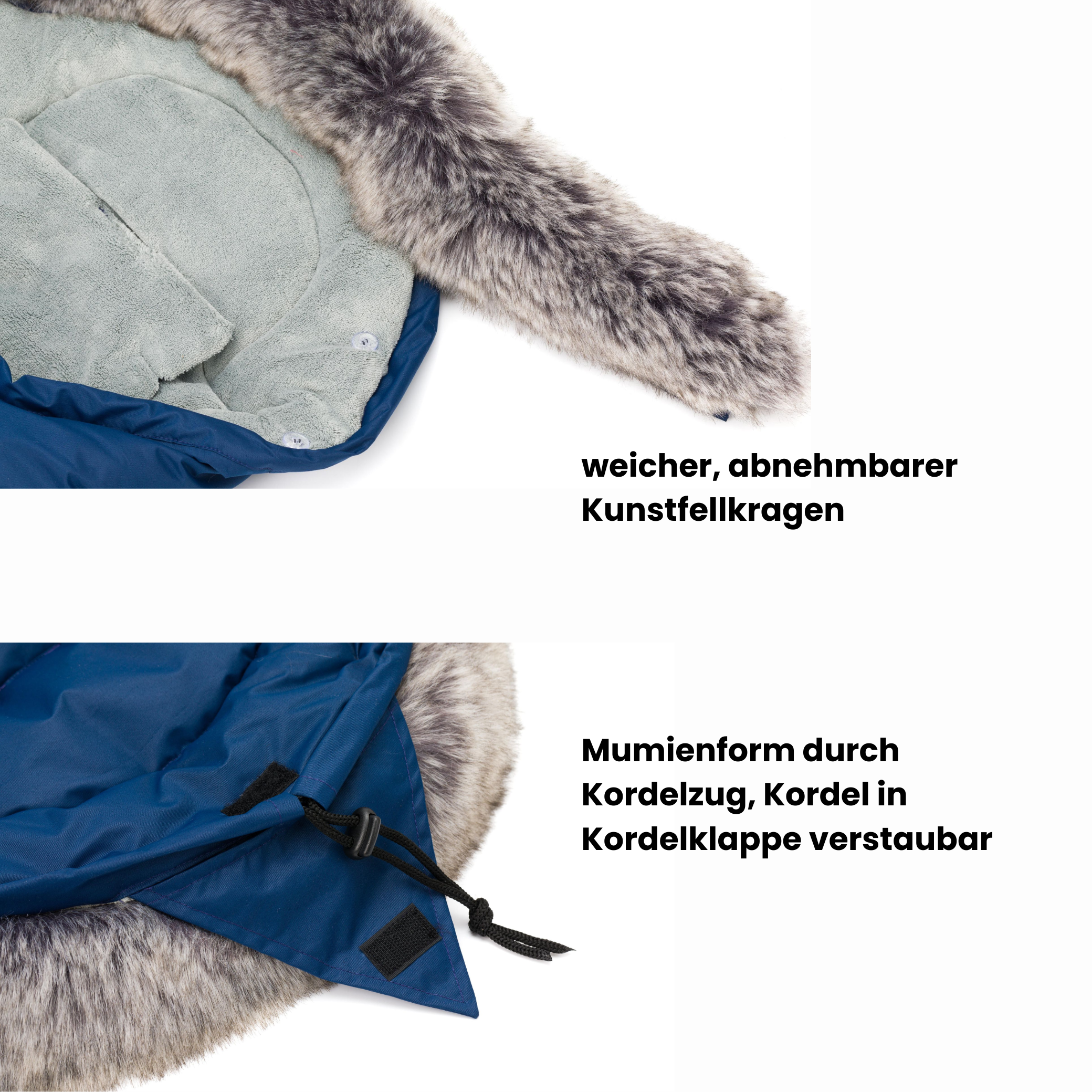 - Stylischer und abnehmbarer Kunstfellkragen