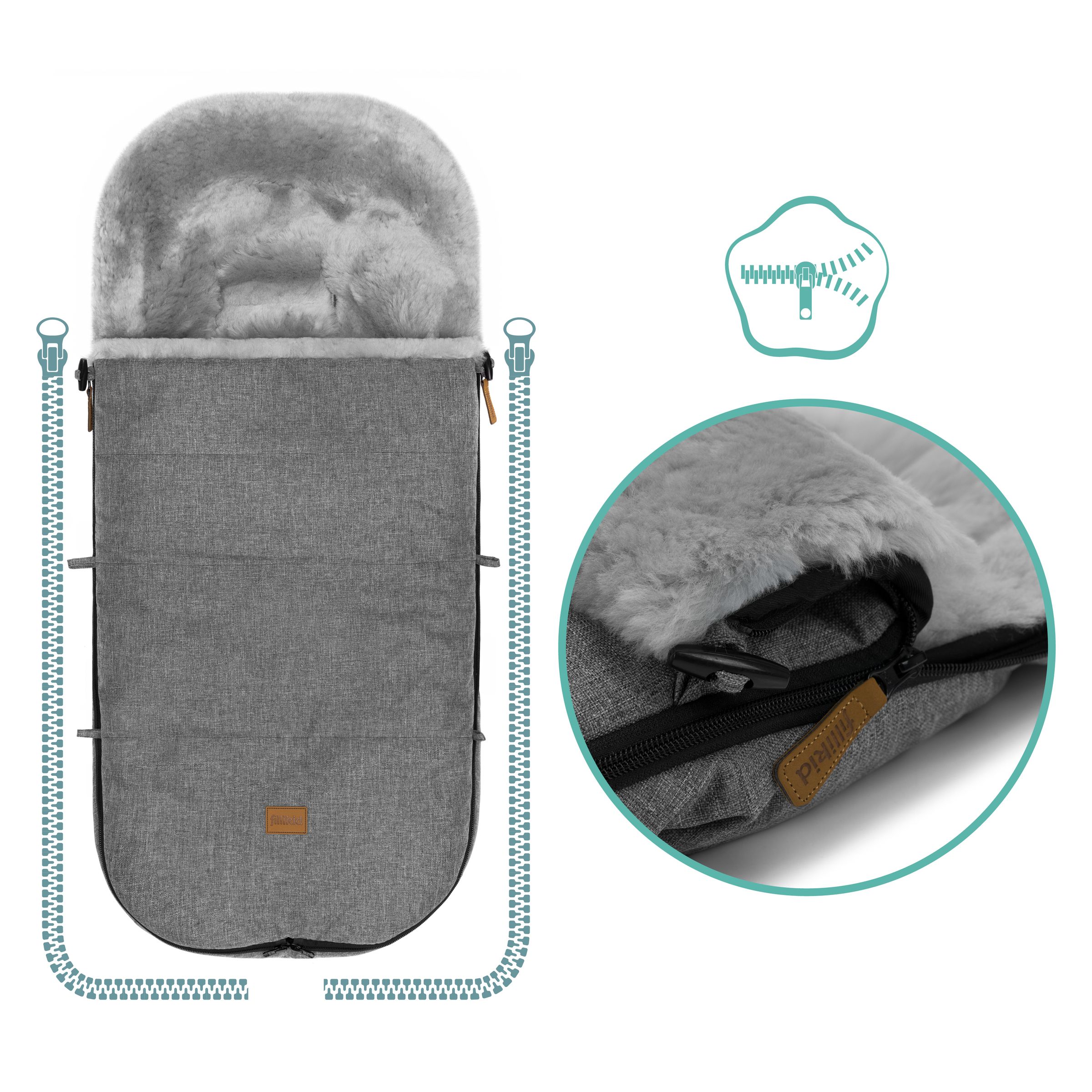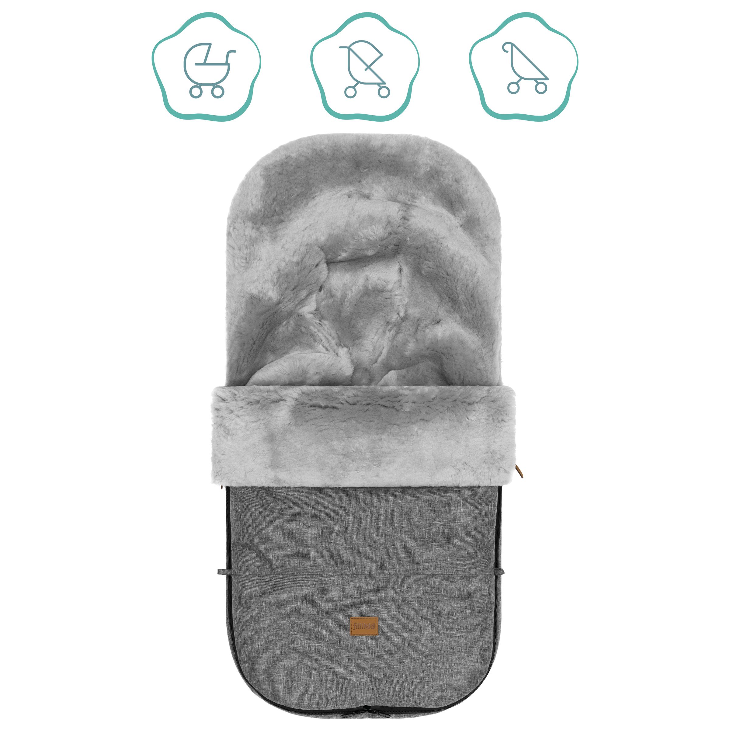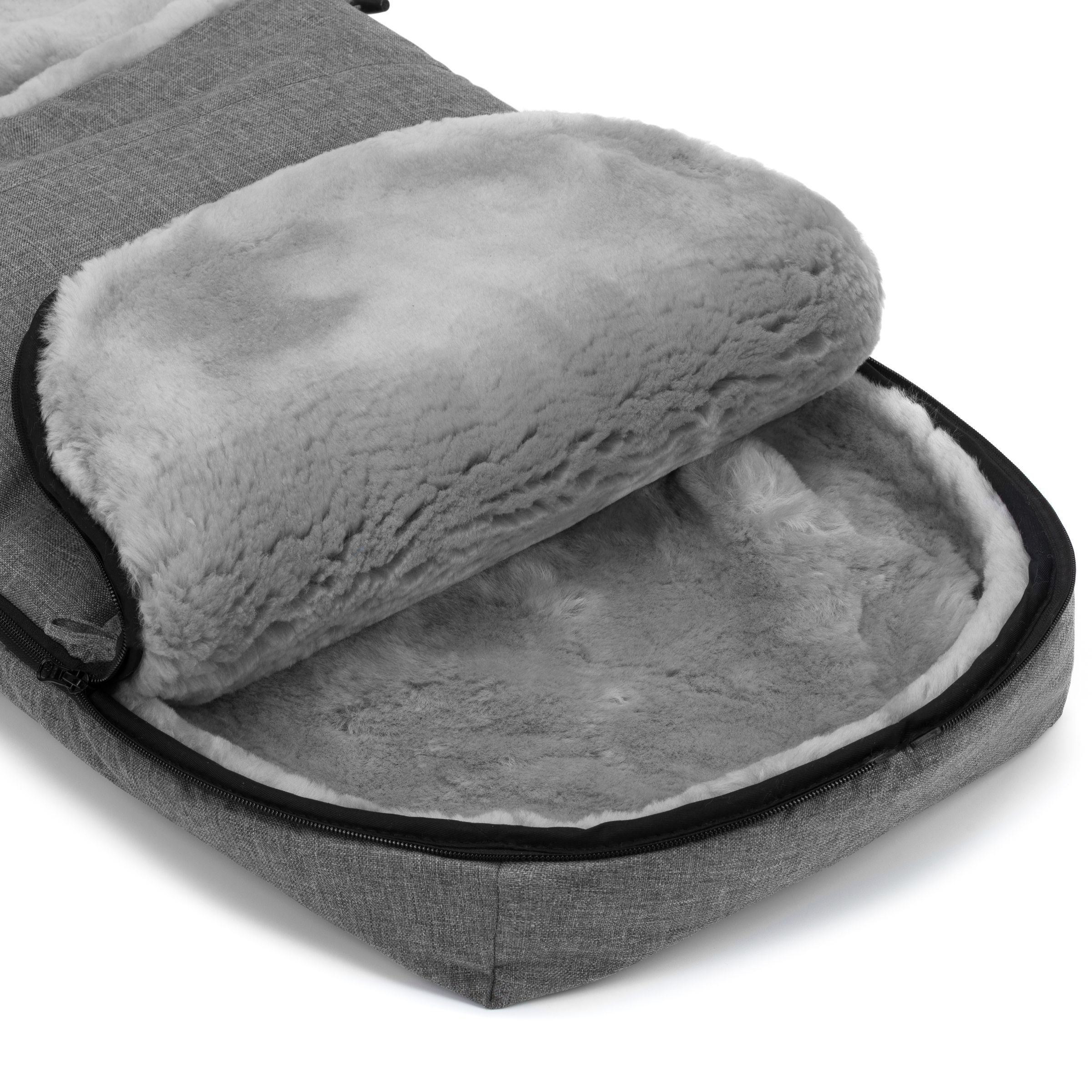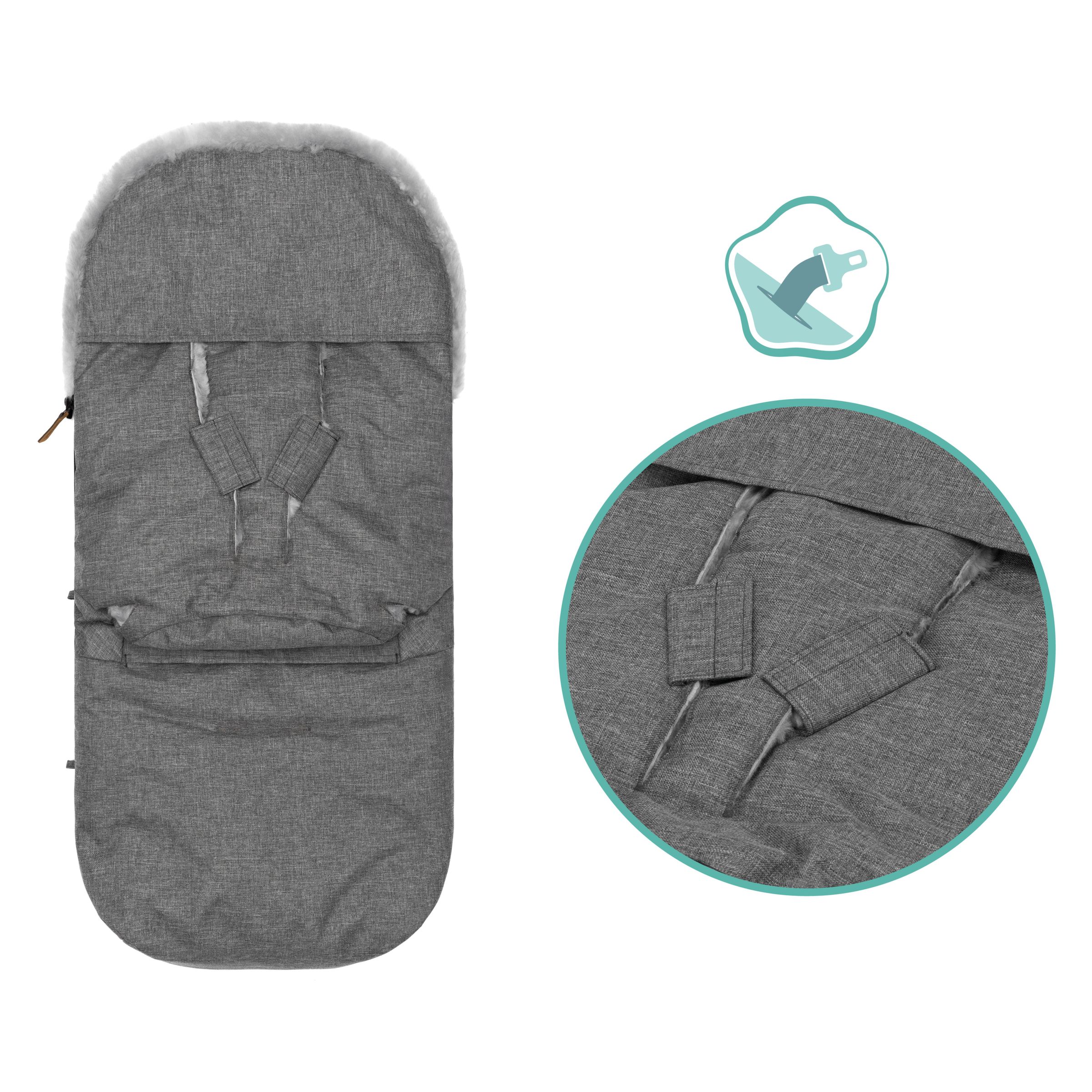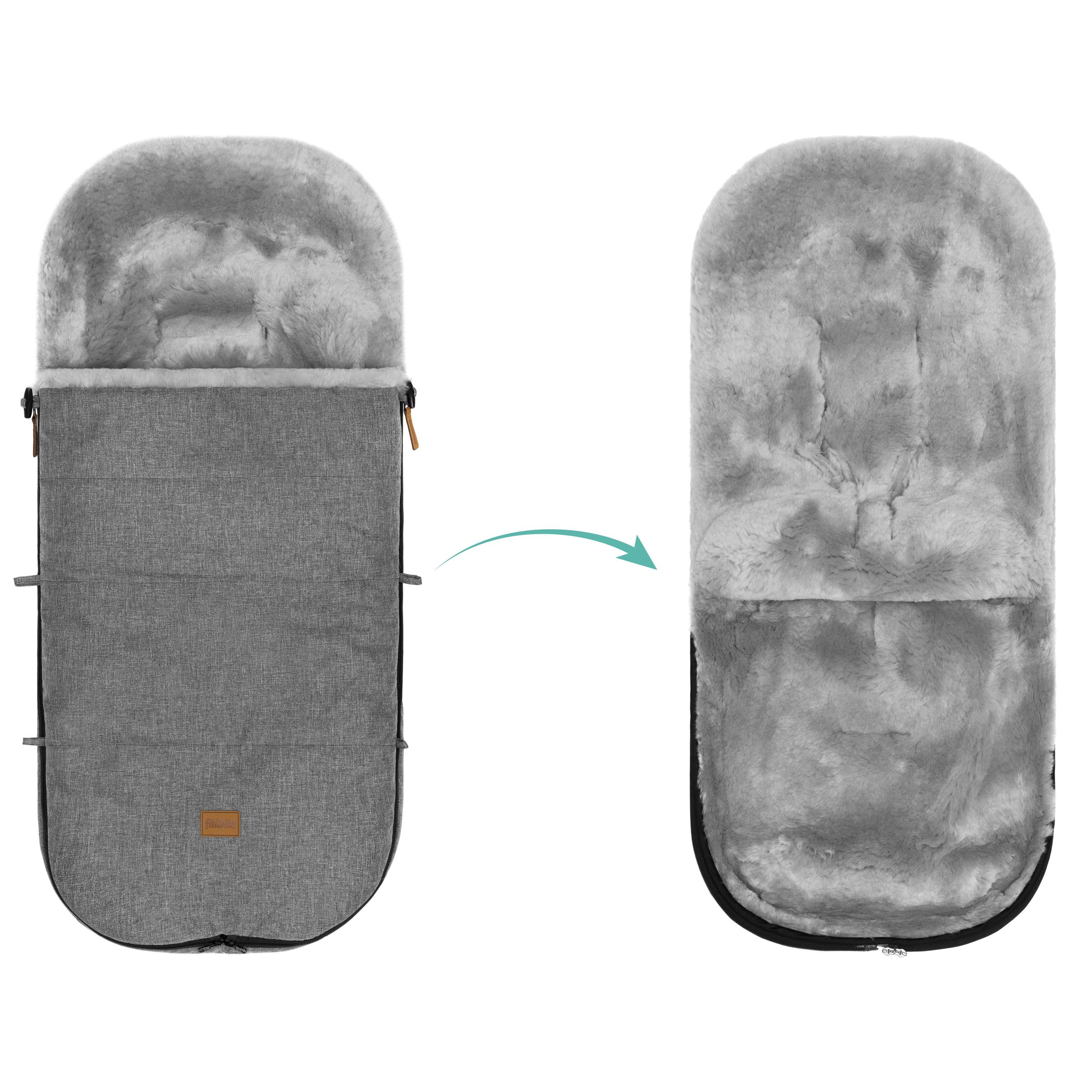 Der schöne Winterfußsack Makalu besteht aus natürlichem, medizinisch gegerbtem Lammfell. Sein spezieller Schnitt ist darauf ausgelegt, dass er perfekt in Kinderwägen mit abgewinkeltem Sitzteil, wie etwa der Marke Bugaboo, Joolz etc. passt. Durch seine Größe und seine kuschelige Fellfütterung ist er perfekt um auch an kalten Tagen ausreichend zu wärmen. Dank der langen Gurtschlitze können Sie den Fußsack ganz leicht in allen gängigen Kinderwagen befestigen. Das Vorderteil lässt sich seitlich durch einen Rundum-Reißverschluss öffnen und ermöglicht dadurch, den Fußsack als kuschelige Fellauflage zu verwenden.