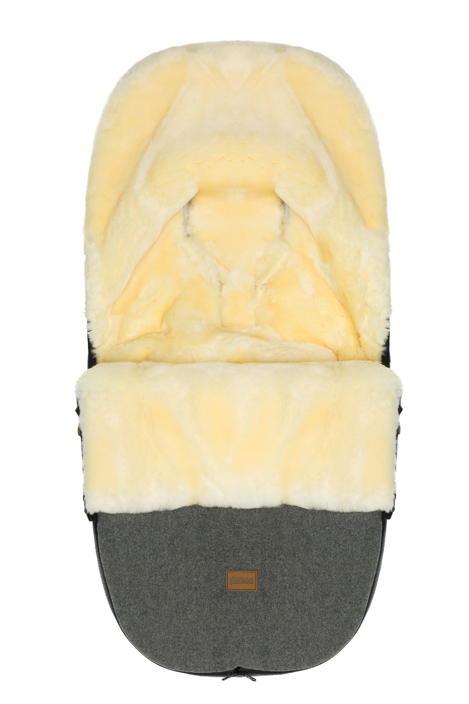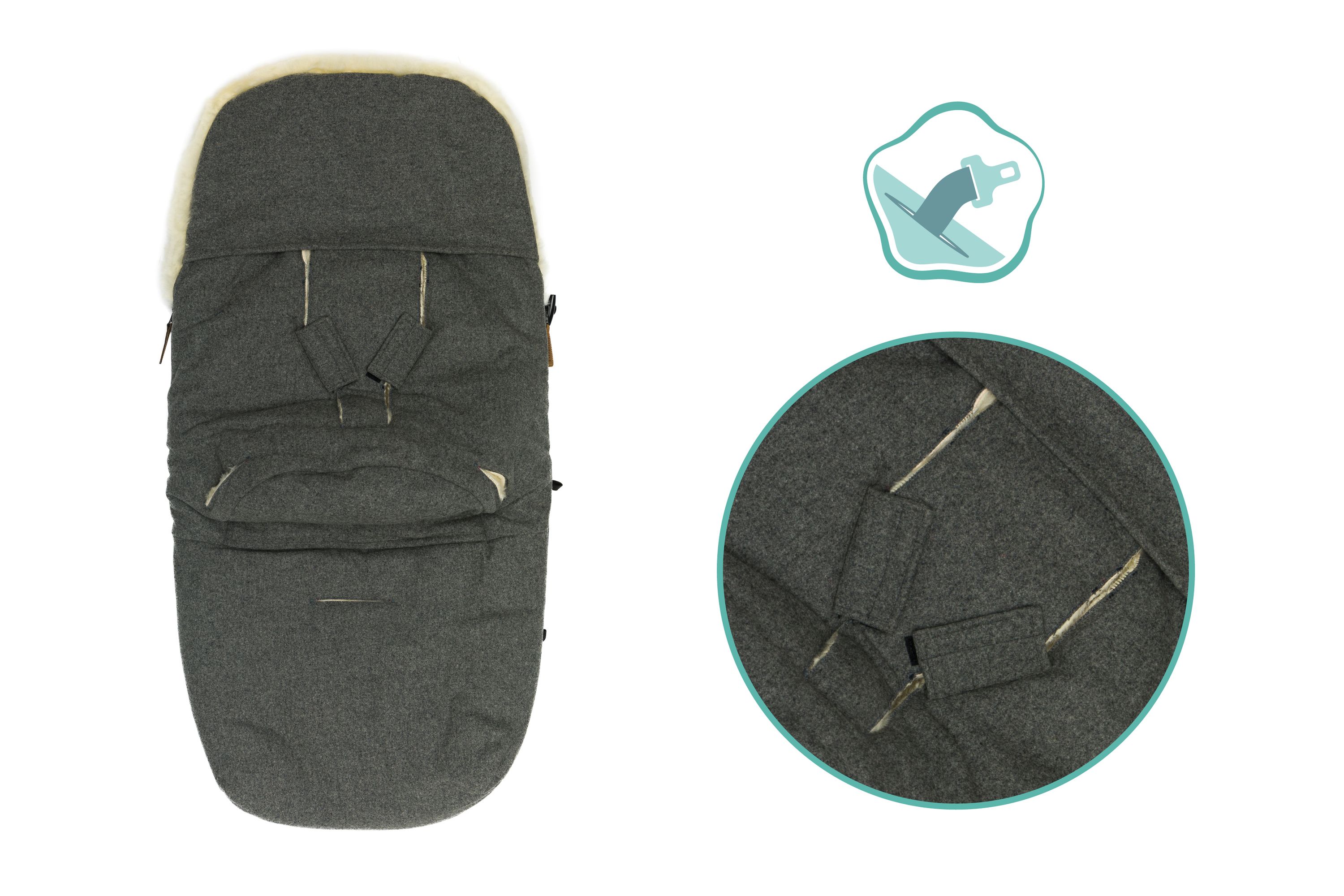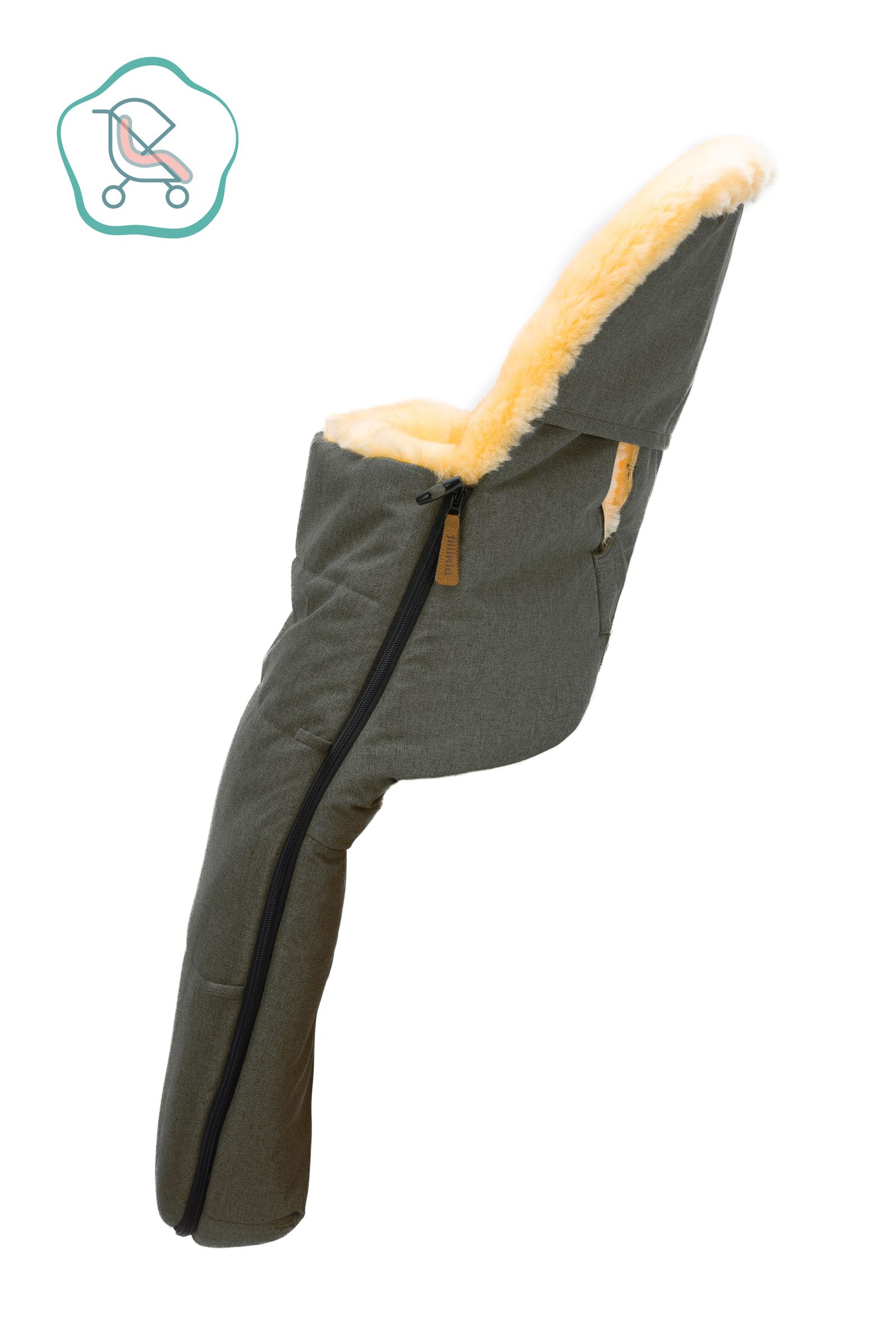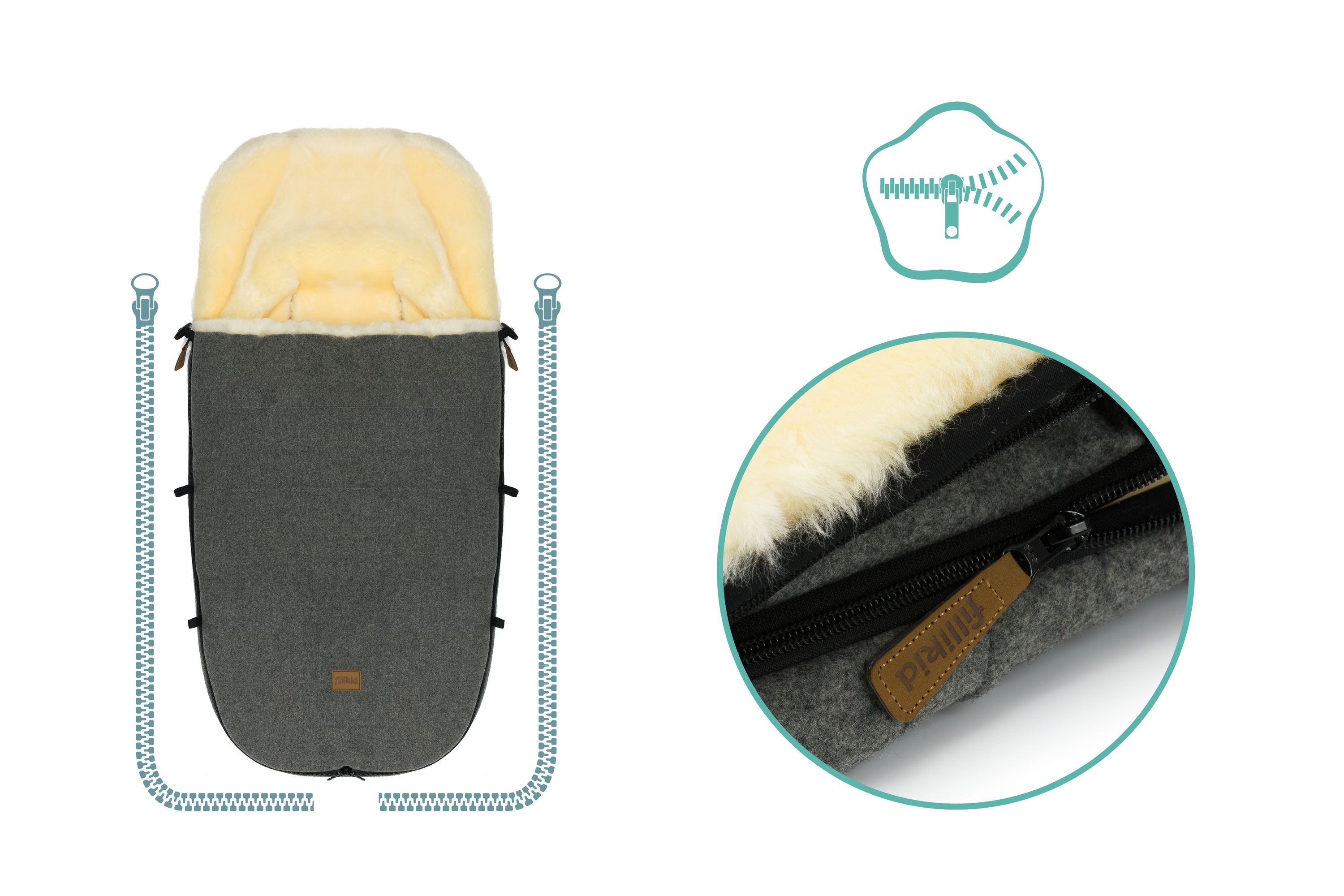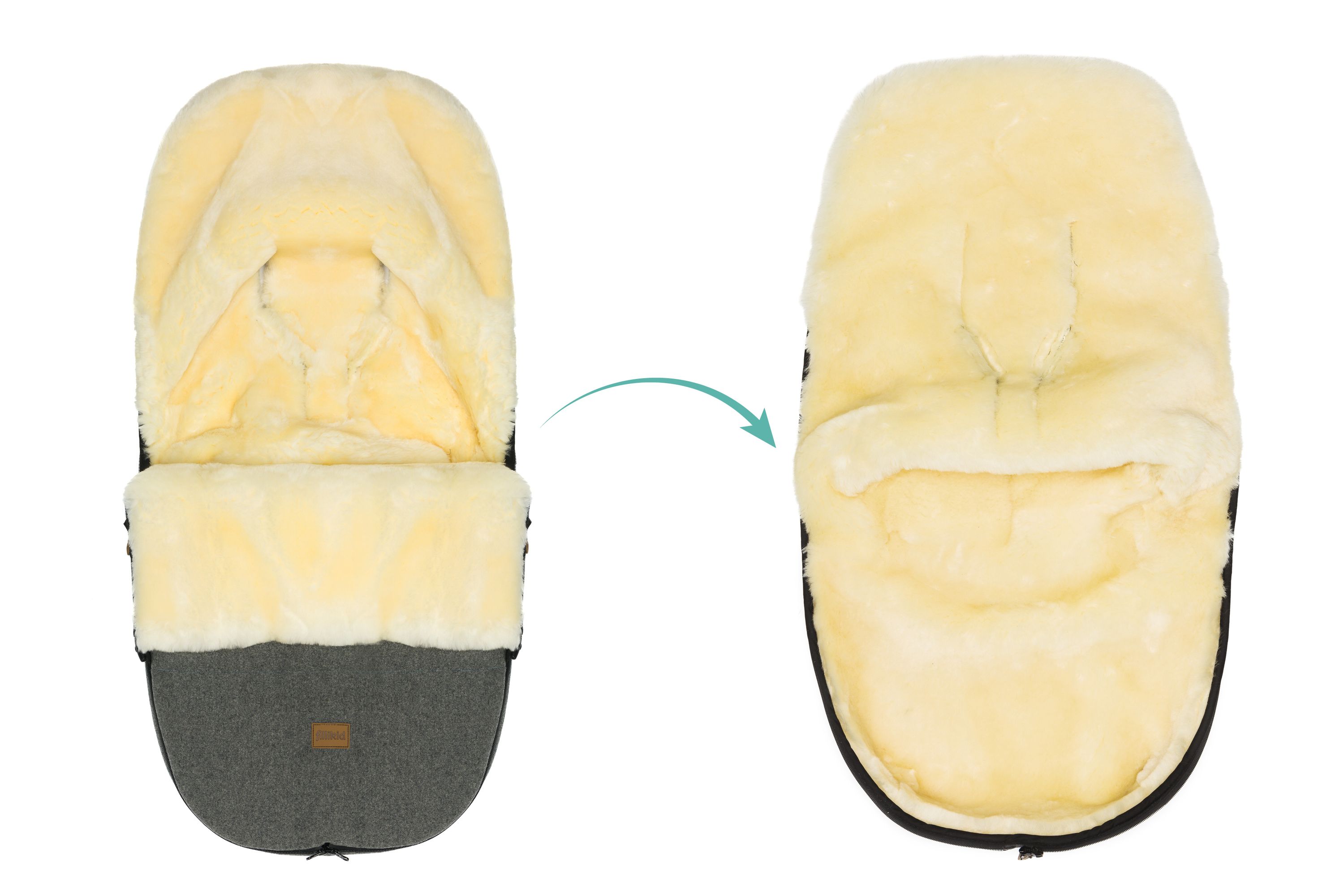 Der schöne Winterfußsack Makalu besteht aus natürlichem, medizinisch gegerbtem Lammfell. Sein spezieller Schnitt ist darauf ausgelegt, dass er perfekt in Kinderwägen mit abgewinkeltem Sitzteil, wie etwa der Marke Bugaboo, Joolz etc. passt. Durch seine Größe und seine kuschelige Fellfütterung ist er perfekt um auch an kalten Tagen ausreichend zu wärmen. Dank der langen Gurtschlitze können Sie den Fußsack ganz leicht in allen gängigen Kinderwagen befestigen. Das Vorderteil lässt sich seitlich durch einen Rundum-Reißverschluss öffnen und ermöglicht dadurch, den Fußsack als kuschelige Fellauflage zu verwenden.