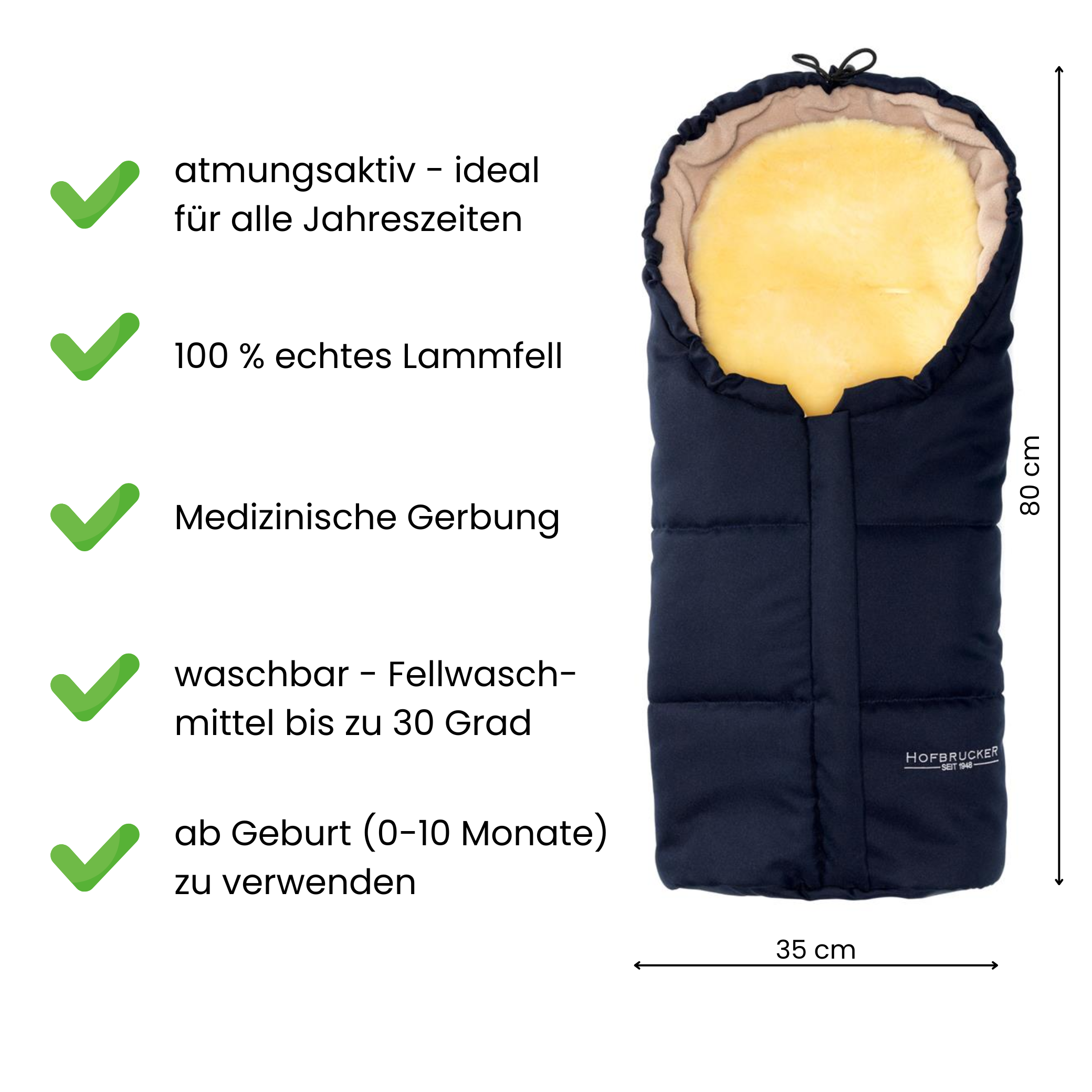Hofbrucker Lammfell-Fußsäckchen Leni für Babyschale und Kinderwagen | Kinderhaus Blaubär