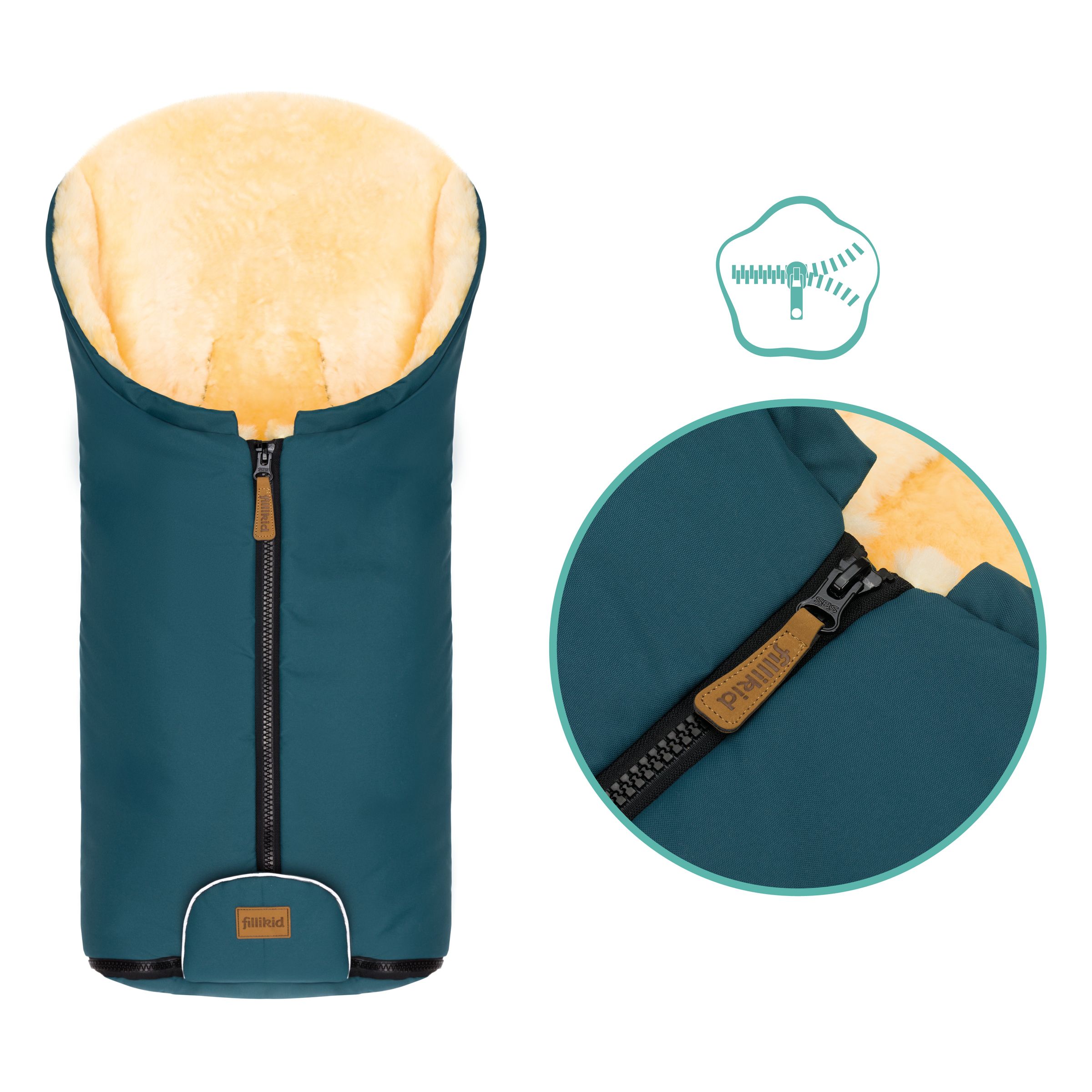 Dieser Fußsack von Fillikid wird mit Liebe und Sorgfalt von Hand gefertigt. Eine komplett in Eigenregie betriebene Wertschöpfungskette, von der Rohware bis zum fertigen Produkt und wird mit echtem Lammfell hergestellt somit eignet sich hervorragend für Ausflüge bei kalter Witterung. Ein Rundum-Reißverschluss erleichtert das Hineinlegen und Herausnehmen Ihres Kindes und ermöglicht die teilweise oder gar vollständige Öffnung des Fußsacks. Geeignet für Kinderwagen & Kindersitze hat es Ihr Baby darin immer schön warm und kuschelig. Integrierte Gurtschlitze zur Durchführung von Sicherheitsgurten sorgen zudem für optimalen Halt. Der Kopfbereich lässt sich über einen Kordelzug einfach anpassen und schützt so den empfindlichen Babykopf optimal vor Kälte und Zugluft. Im Angebot enthalten ist eine kuschelige Baumwoll-Windel, unverzichtbar in der Babyzeit.