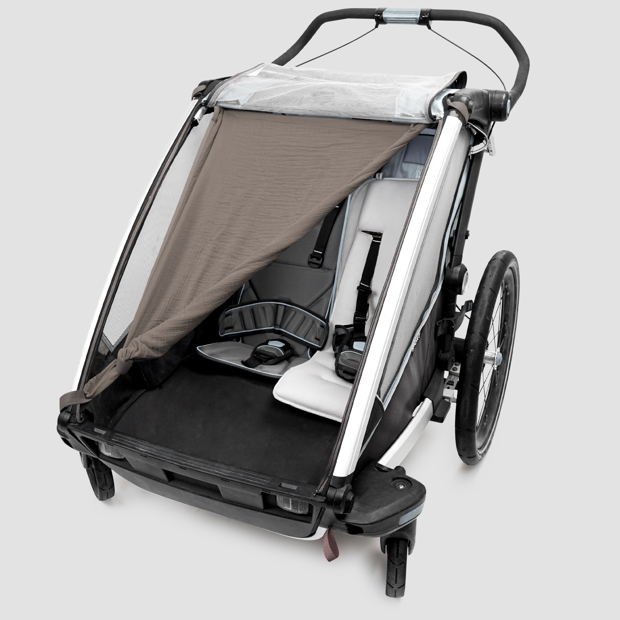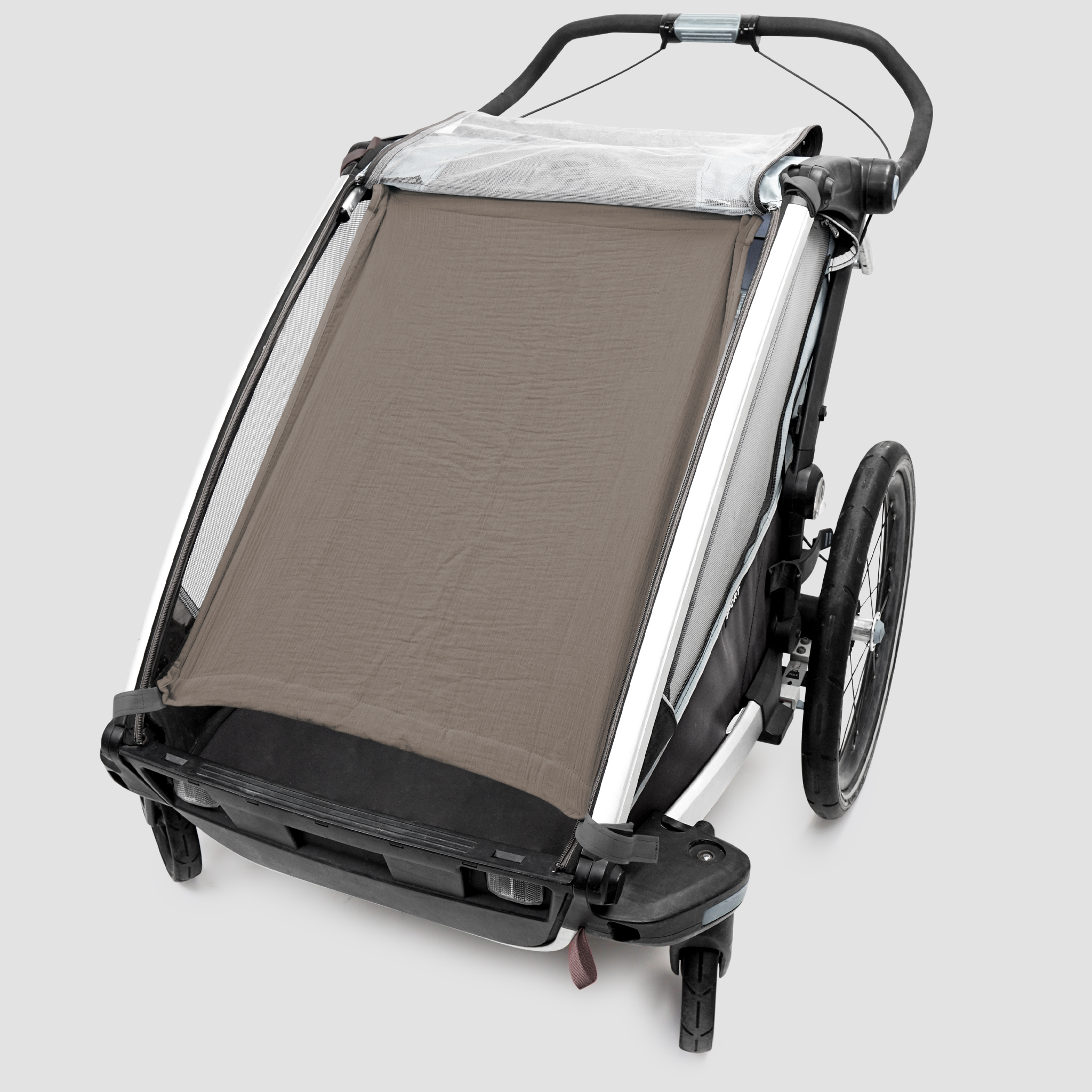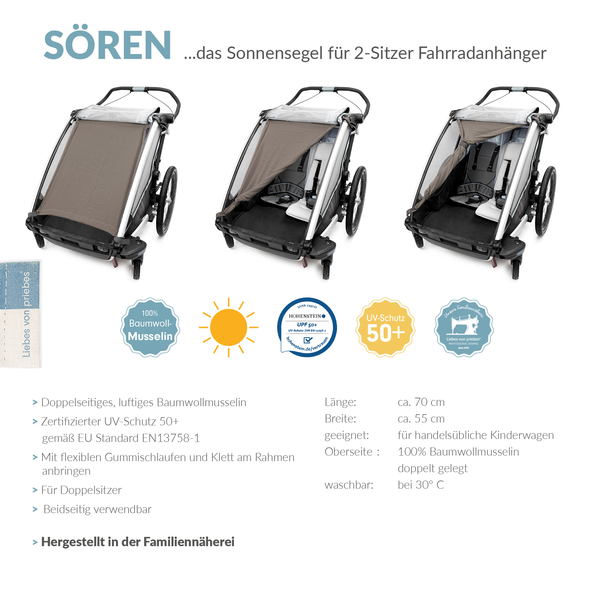 Liebes von priebes SÖREN Sonnensegel 2-Sitzer Fahrradanhänger UV-Schutz 50+ Design Musselin Taupe B-Ware