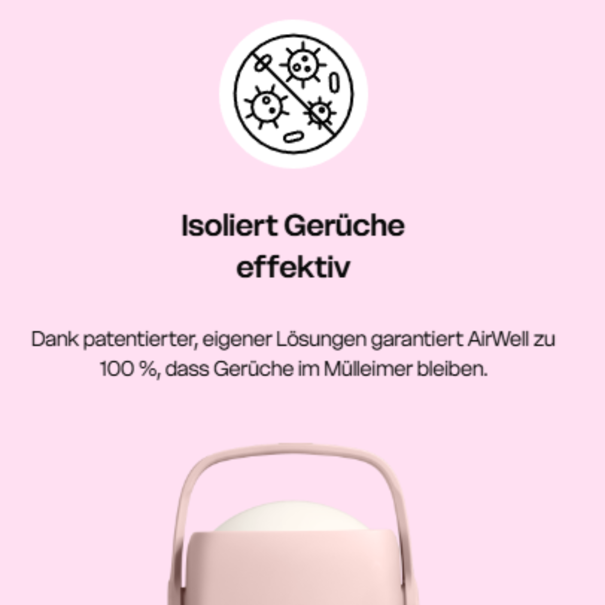 Der AirWell Windeleimer mit einen Fassungsvermögen von 20 Liter bietet eine durchdachte, hygienische und umweltfreundliche Lösung für den Alltag mit Baby. Dank seiner Geruchsbarrerie bleiben unangenehme Gerüche dort, wo sie hingehören - im Inneren des Windeleimers. Ideal für moderne Wickelbereiche, Babyzimmer und Haushalte, die Wert auf Sauberkeit, Komfort und Nachhaltigkeit legen.