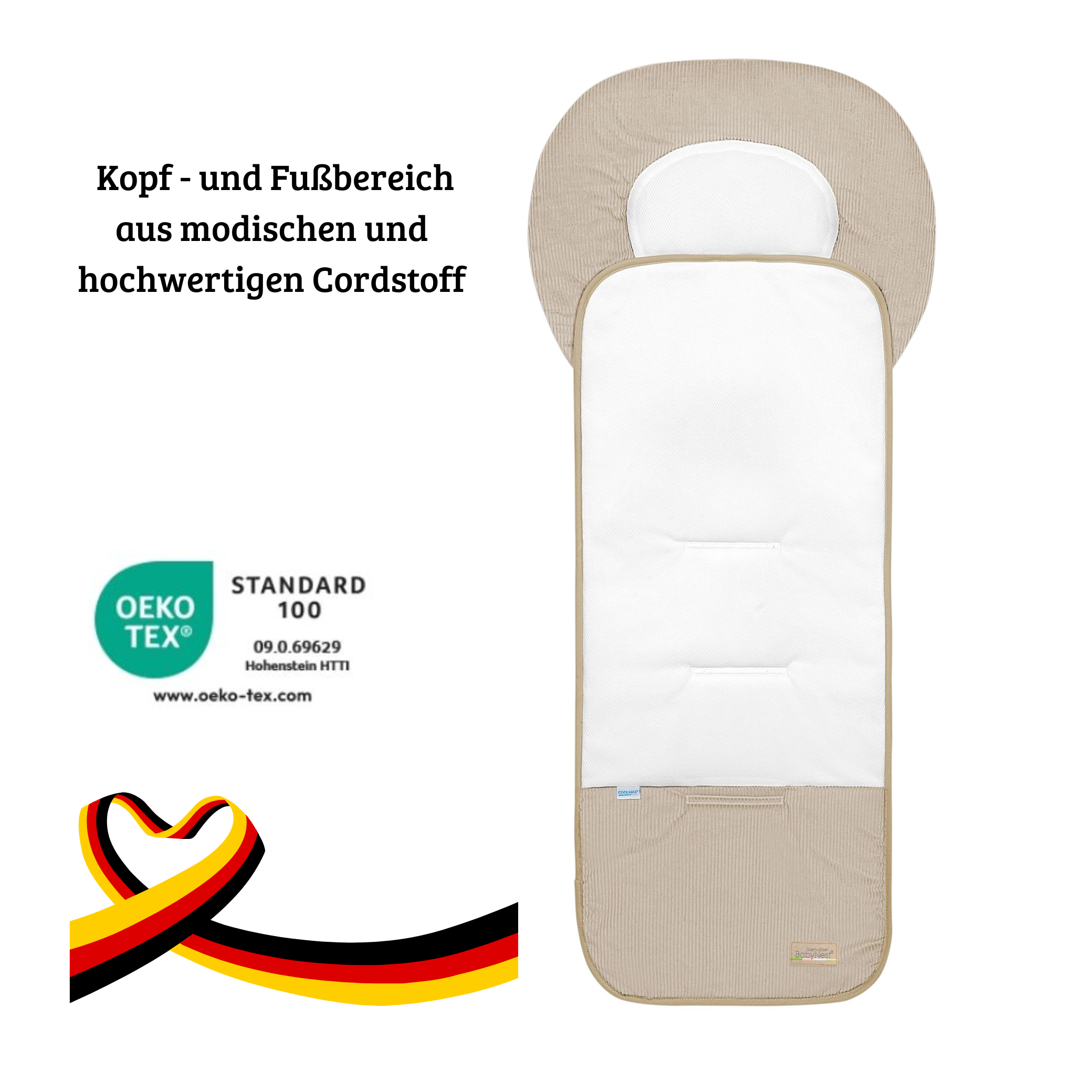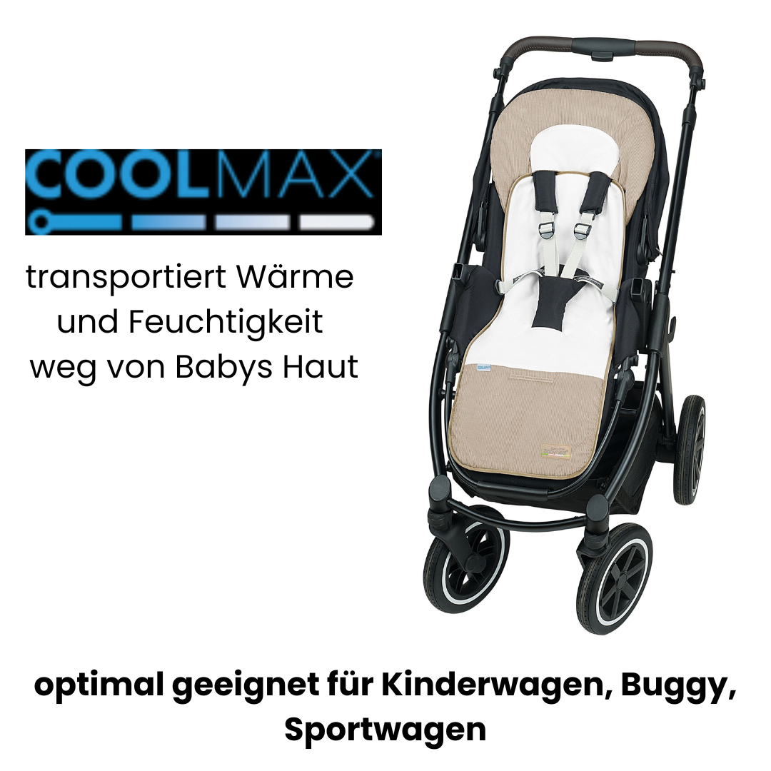 Die Odenwälder Babycool-Auflage mit Coolmax-Ausstattung transportiert die Feuchtigkeit vom Körper weg und verhilft so zu einem kühlen, trockenen und angenehmen Körperklima. Ihr Kind schwitzt nicht in dieser superweichen Sitzauflage für die Babyschale. Die praktische Auflage hat ein abnehmbares Kopfteil, welches je nach Bedarf flexibel einsetzbar ist.