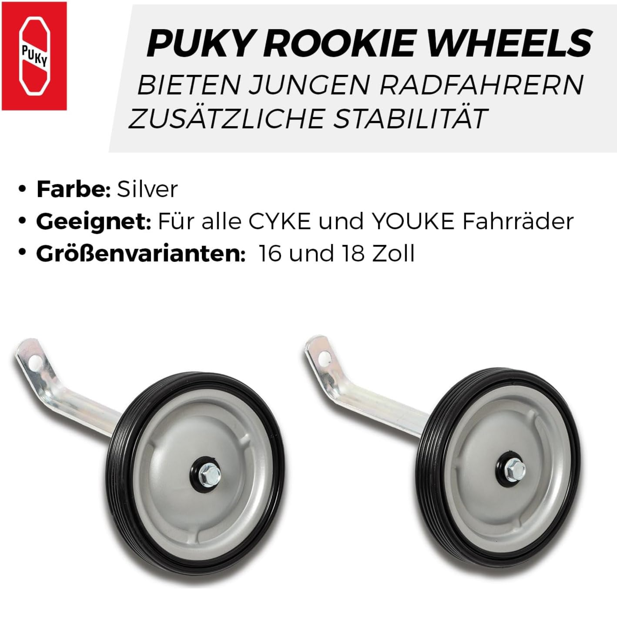Entdecken Sie die Puky ROOKIE WHEELS in Silber – die idealen Stützräder für alle 12" bzw. 14"-18" Fahrräder! Diese hochwertigen Stützräder bieten nicht nur eine einfache Montage, sondern überzeugen auch durch ihr leichtes Gewicht und Stabilität. Sie sorgen für zusätzliche Sicherheit, während Ihr Kind das Radfahren lernt. Die Puky ROOKIE WHEELS sind perfekt auf die Bedürfnisse kleiner Fahrer abgestimmt und ermöglichen ein unbeschwertes Fahrvergnügen. Mit ihrem silbernen Finish fügen sie sich harmonisch in das Gesamtbild jedes Fahrrads ein. Vertrauen Sie auf Qualität und Sicherheit – für unvergessliches Lernen auf zwei Rädern!